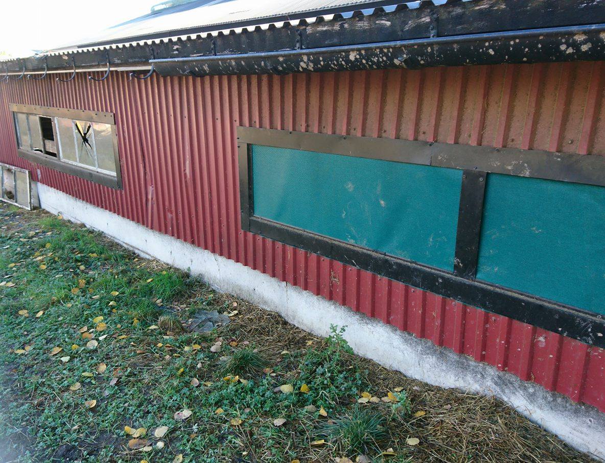 Sedan la sig lillungen för långsovning i vagnen och vi tog tag i lite fönsterbyte. Eller från fönster till vindnät. Massa trasiga rutor längs med lagårn som ser jätteroligt ut och så drar det ju också. Men istället för att byta ut rutorna (som vi gjort innan) så tar vi bort fönstren och sätter dit vindnät istället. Kanske inte lika snyggt som fina, riktiga fönster men när de går sönder hela tiden av fåglar och nu sprutande halm så ser det inte så roligt ut längre så tänker vi att det detta är bättre!