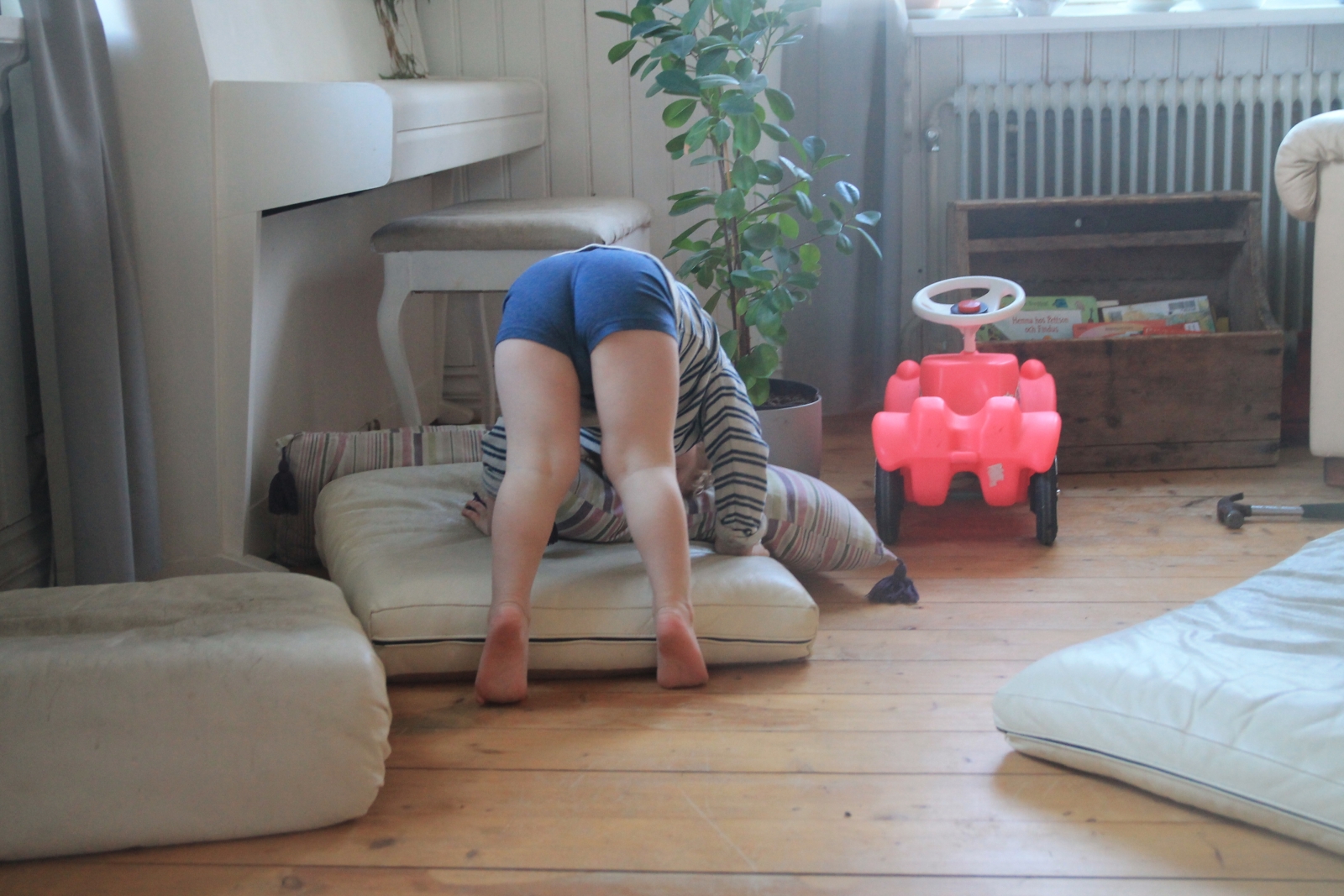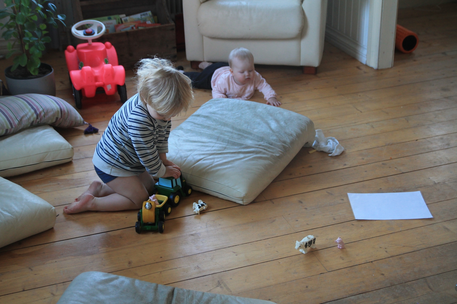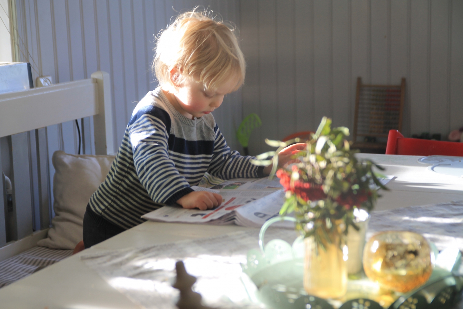 Lilla P läser jordbruksaktuellt i väntan på rostmackan. Älskade gullrumpa.