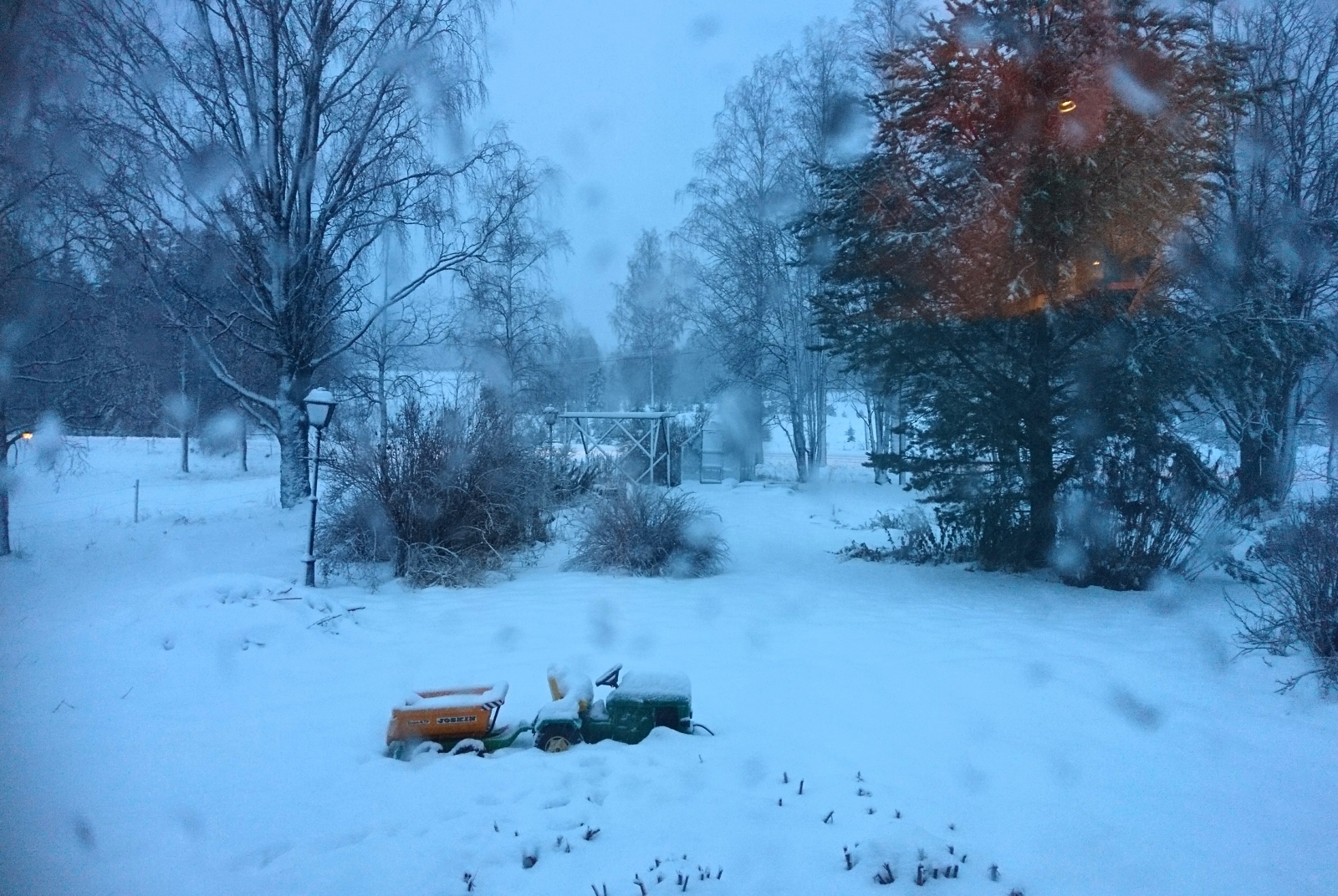 Vilket väder! Det stormar och snöar så det viner i knutarna.