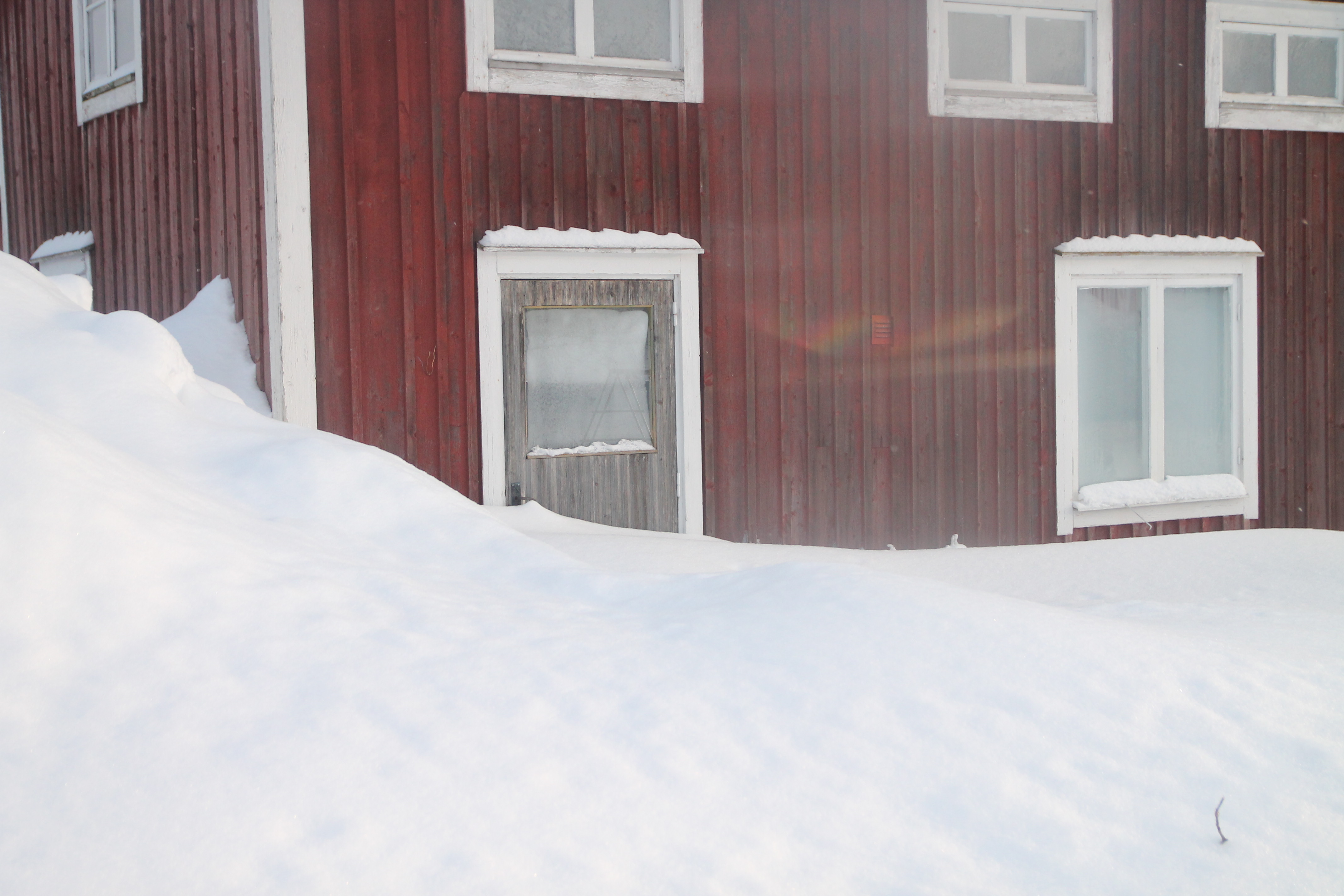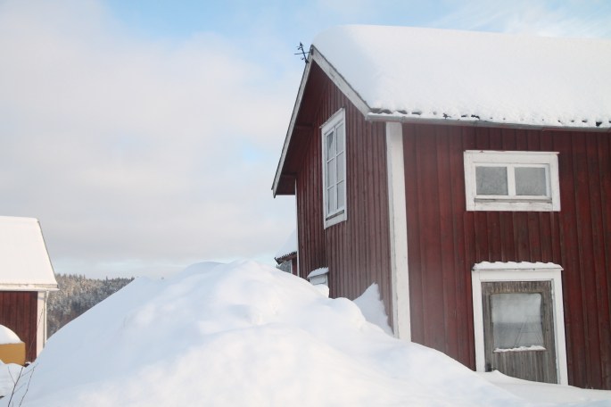 Där inne, bakom snöhögen och dörrhandtag-högt-snödjup.