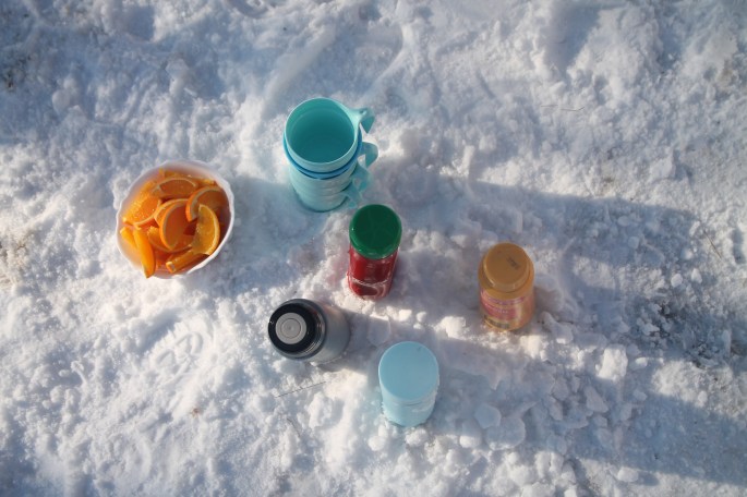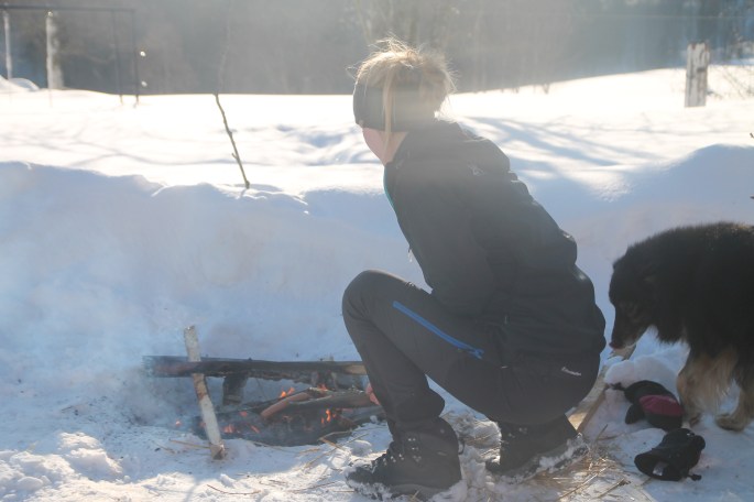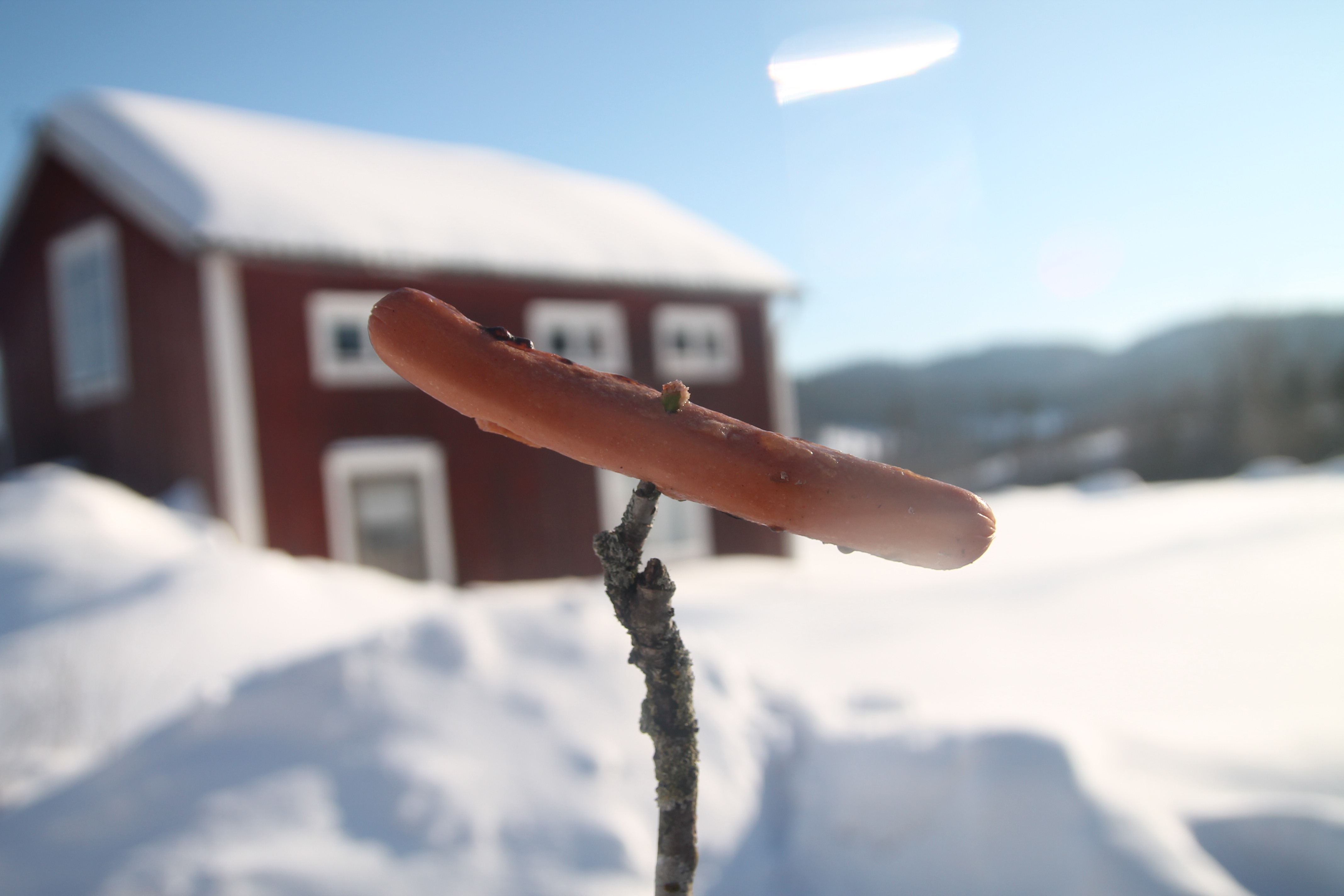 Lagomt till att vi kom in så rullar svägerskan in på gården. Ingen hjälp var i behov längre men de stannade ändå. Ännu en härlig vårvinterdag så gjorde upp en eld på gården och grillade korv och drack varm choklad. bara sådär.