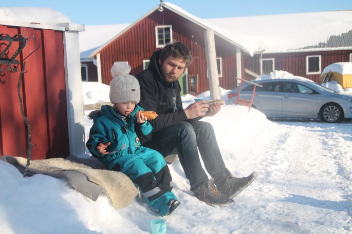 Trötta efter en lite spännande morgon och utedag i korvos och solsken.
