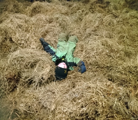 Efter en liten eftermiddagsvila för pojkarna så klädde vi oss och gick ut hela familjen för lagårdsjobb.