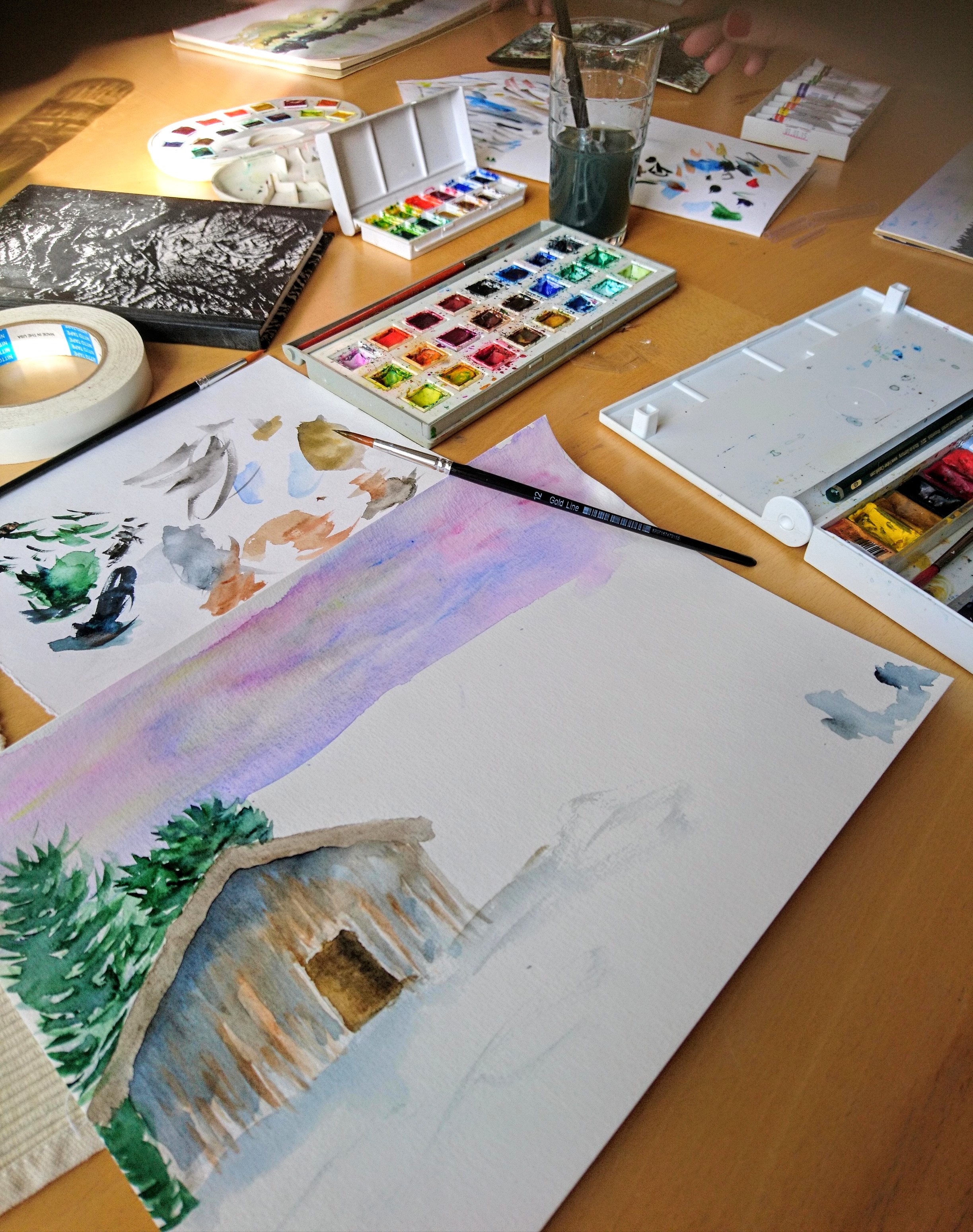 Jag lämnade pappan och barn hemma och åkte iväg själv, tillsammans med min mor på akvarellkurs! Jag målade rätt mycket förr och har alltid älskat det. Men det är som mycket annat, den där tiden som inte riktigt räcker till allt man vill göra! Men då denna möjlighet dök upp, bara en dagskurs i närheten så var det självklart att haka på!