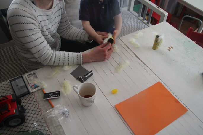 Vi gjorde varsin kyckling! Enkelt och lagomt pyssel för en treåring.