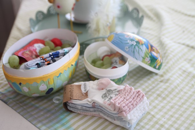 Påskharen hade hoppat förbi med ägg att leta ute efter med lite smått och gott i.