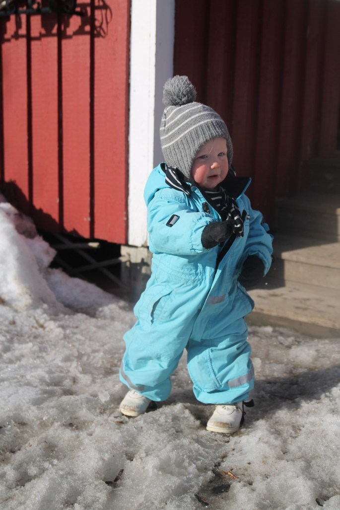 Aja, hem och stoppa ungar i vagn för sovning. Mamman och pappan gjorde lagårn i härligt solsken och värmande plusgrader och eftermiddagen spenderades sedan ute när barnen vaknat igen.