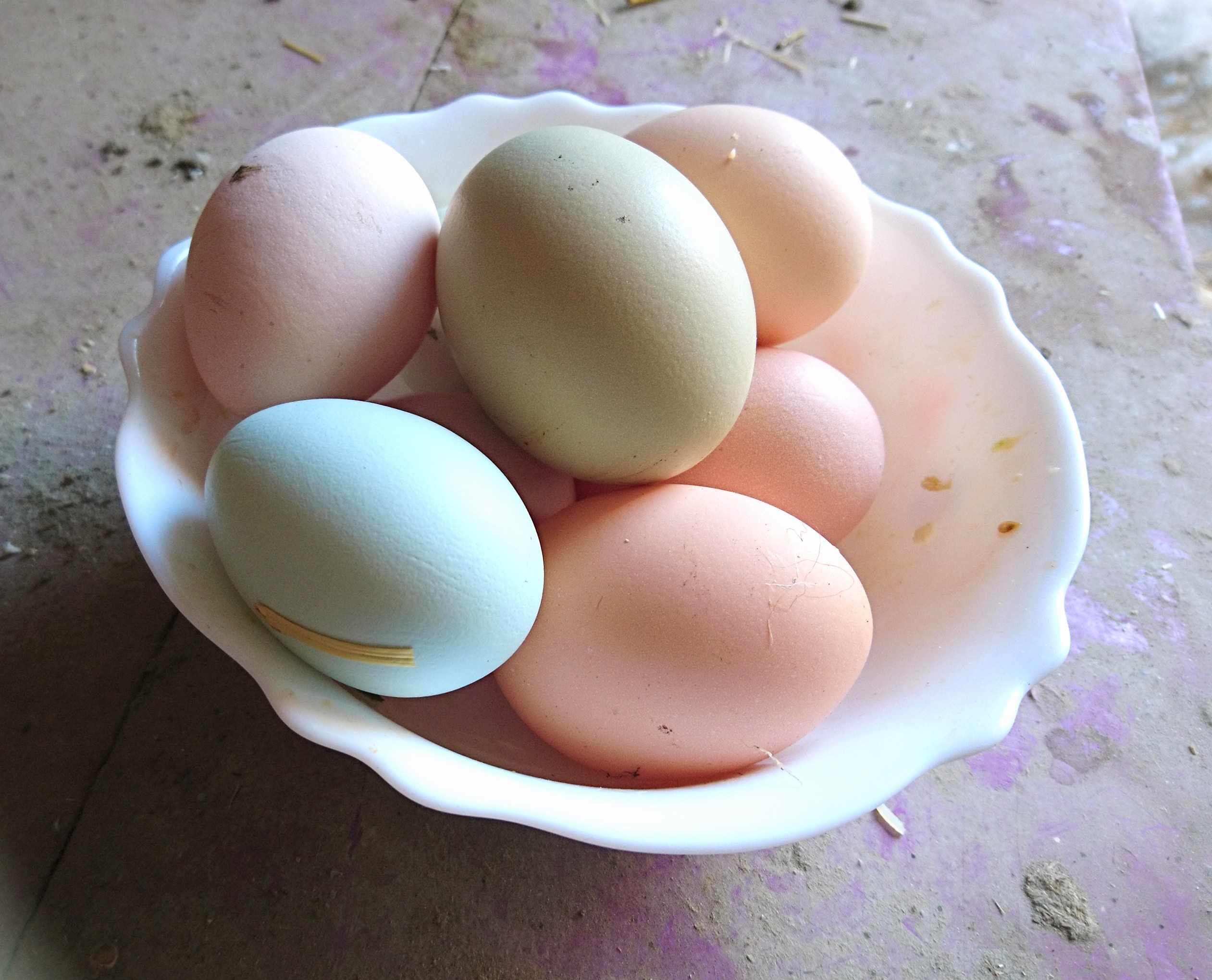 Sju ägg plockas nu dagligen av åtta hönor i en härlig färgskala! Tack ladies!