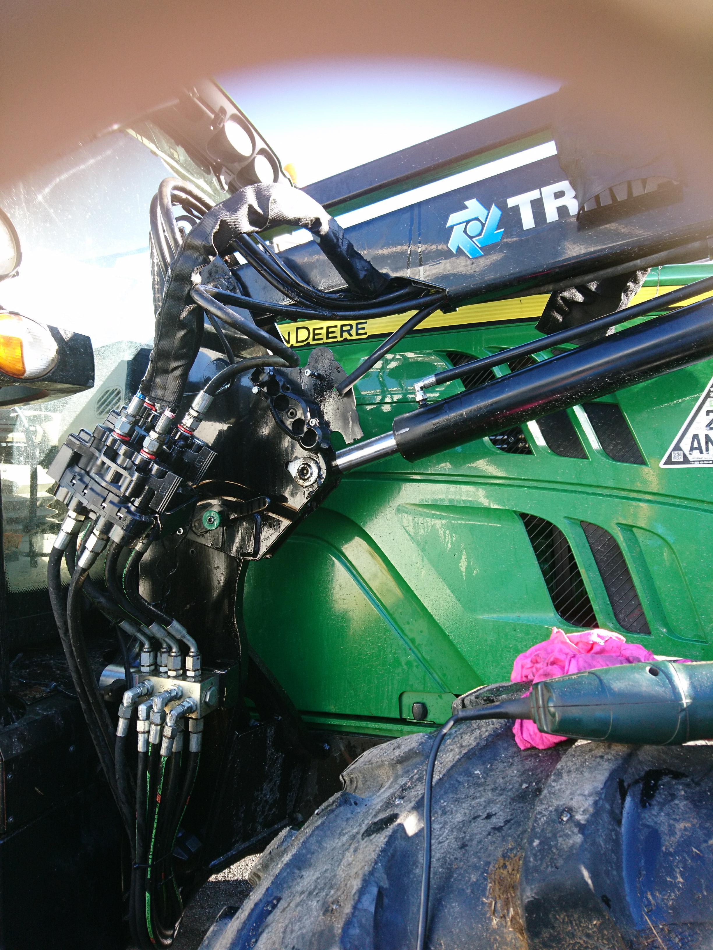 Men när vi nästan var klara ja då går en hyudralslang sönder på lastarn på traktorn. Suck. Och som vanligt på jordbruksmaskiner så sitter ju allt så himla bra till att det bara är att byta.Ha! Innestlat överallt så ja, inget att göra just där just då.