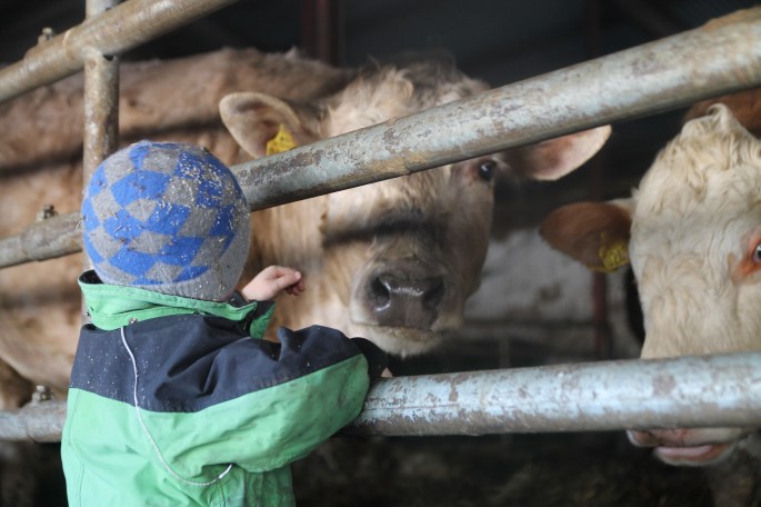 Gårdsrunda hos hönsen och kossorna. Och lite städ och plock på gården.