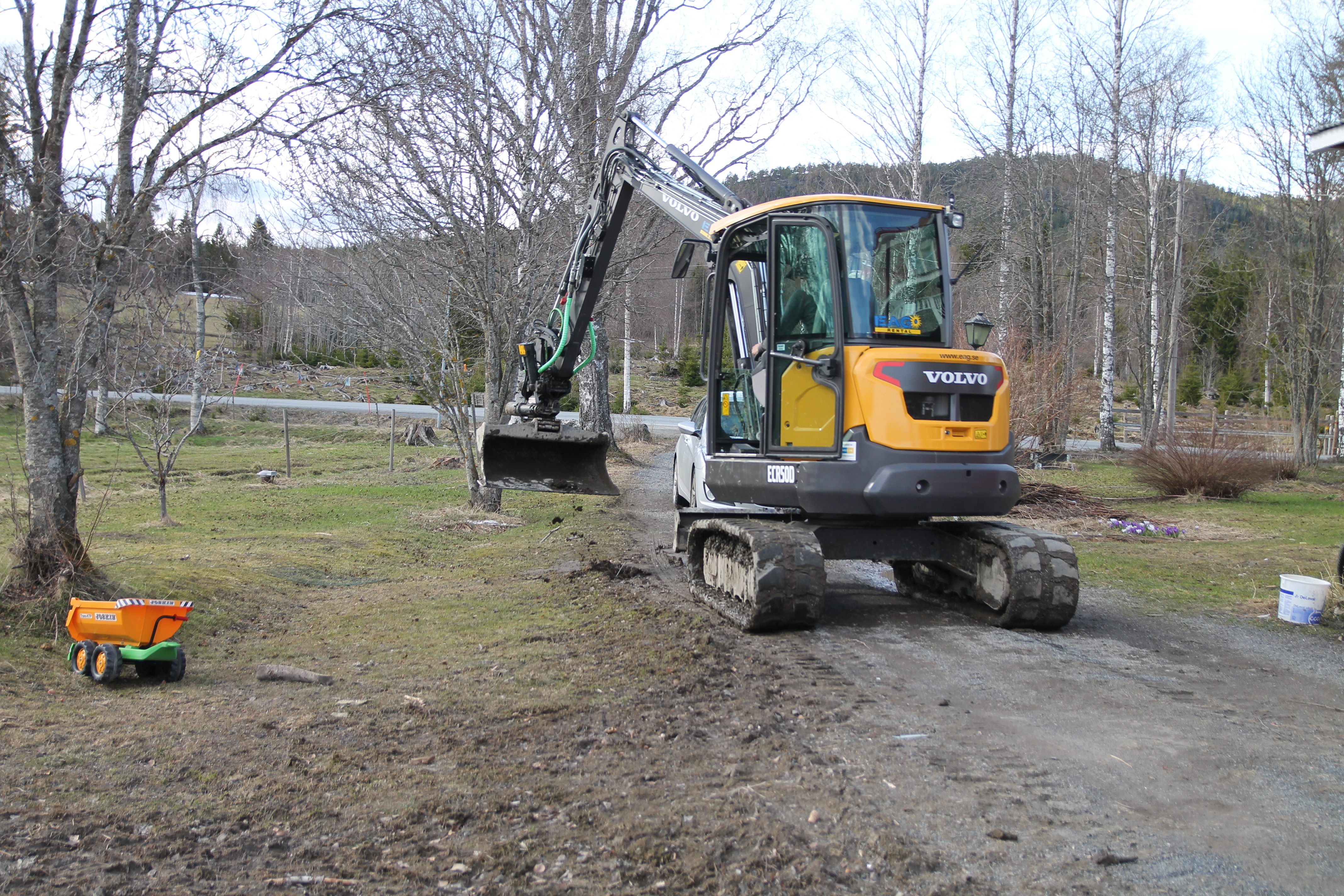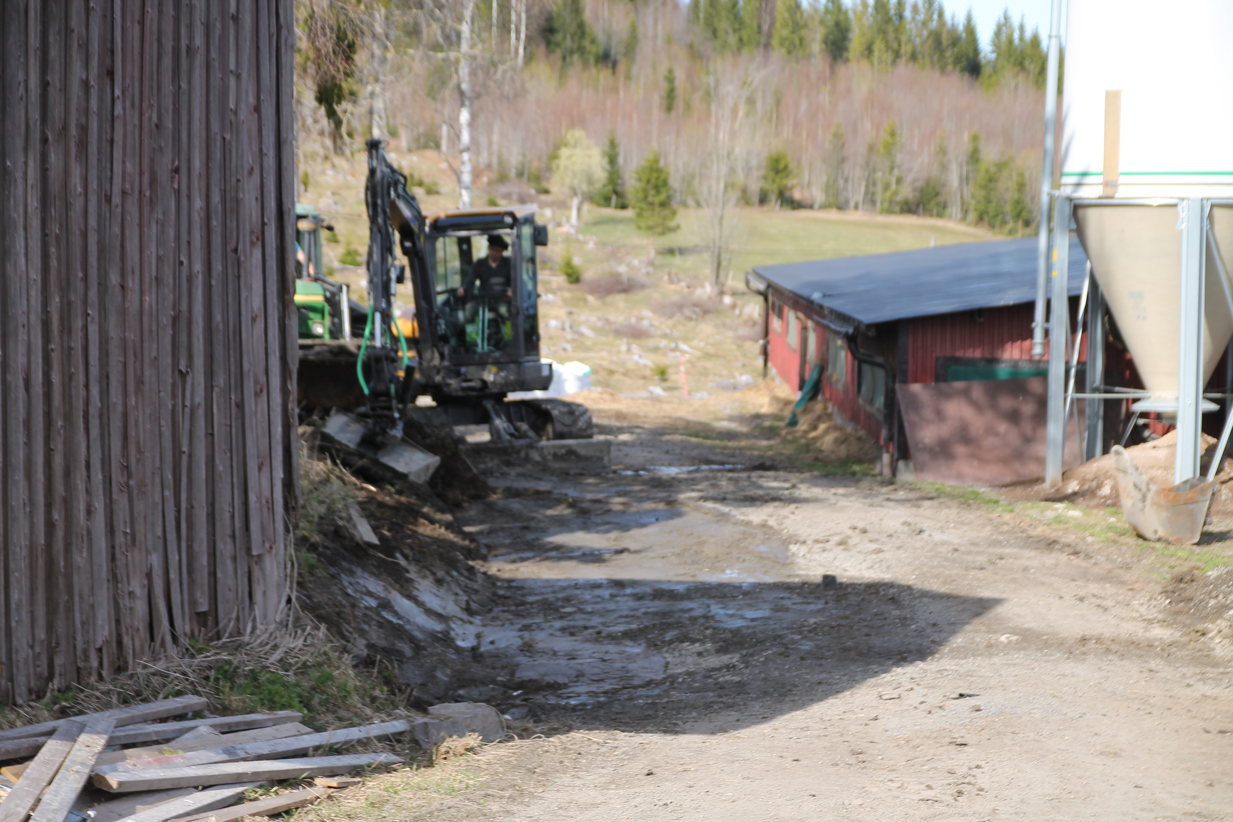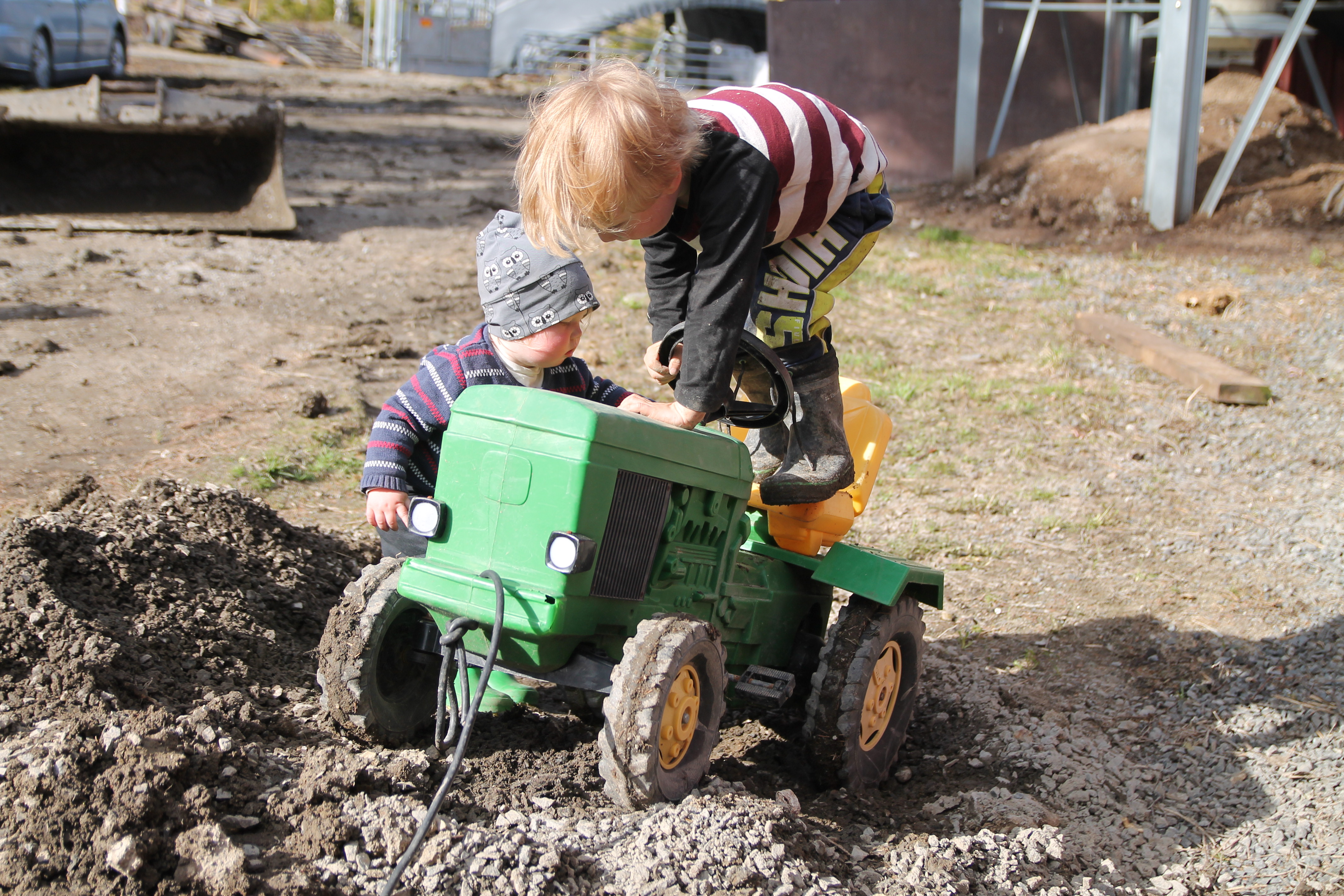 En kort visit hos Gammelmormor och sedan hem. En snabb genomgång av kvällens plan och så ut med oss alla. Pappan skrapade och halmade lagårn och jag och barn fixade stängslet det lilla som var kvar på rastfållan. Inget riktigt grönbete men en utomhushage med lite grönska på sina ställen.