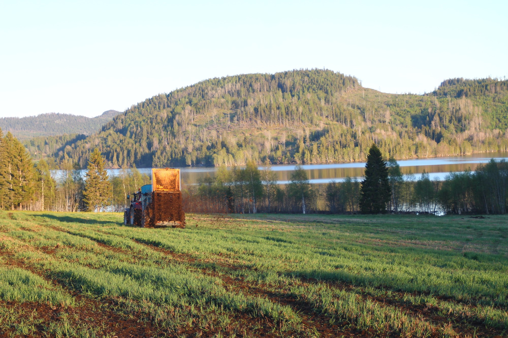 Då hela dagen ”sinkades” med det så var stressnivån hög där på eftermiddagen då fastgödselspridaren ska tillbaka idag och typ en femtedel av dyngan är utkörd bara… Så ett samtal till morföräldrar som kunde ställa upp och ha barn igårkväll så vi kunde köra på.