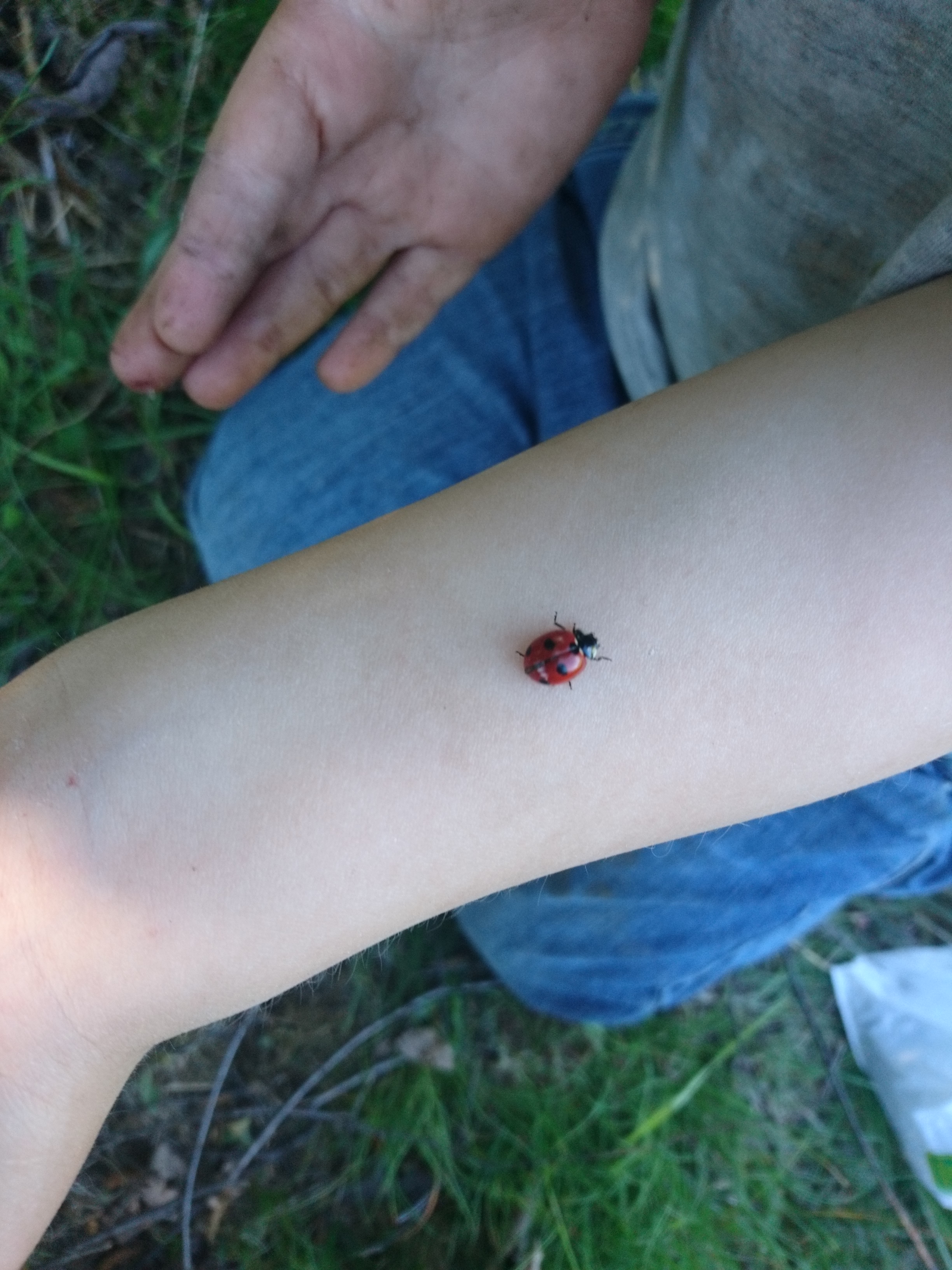 Med en på ryggen och en springandes bredvid som hjälpte mamman att hålla ena endan av tråden eller sitta en stund med en nyckelpiga på armen.