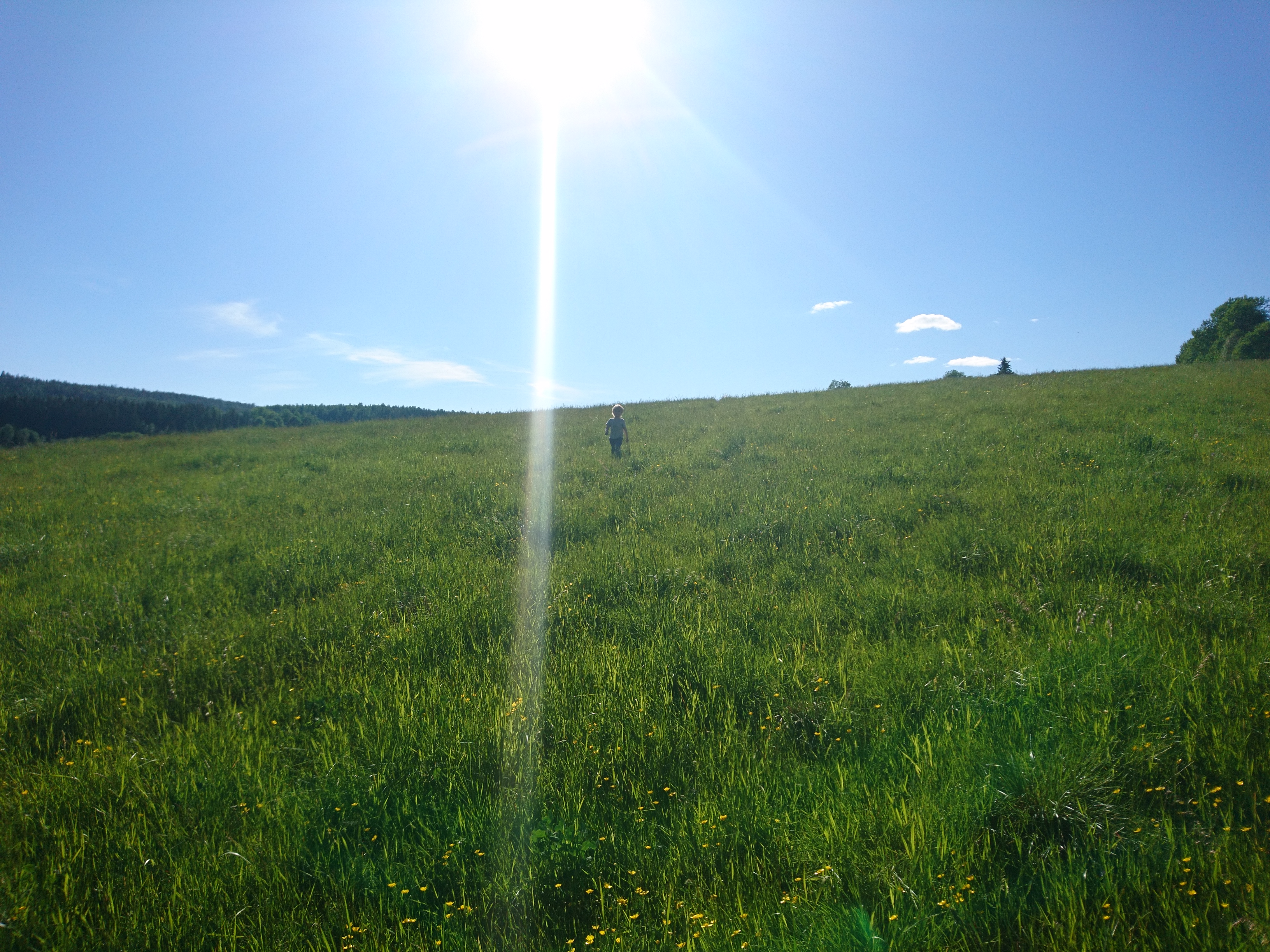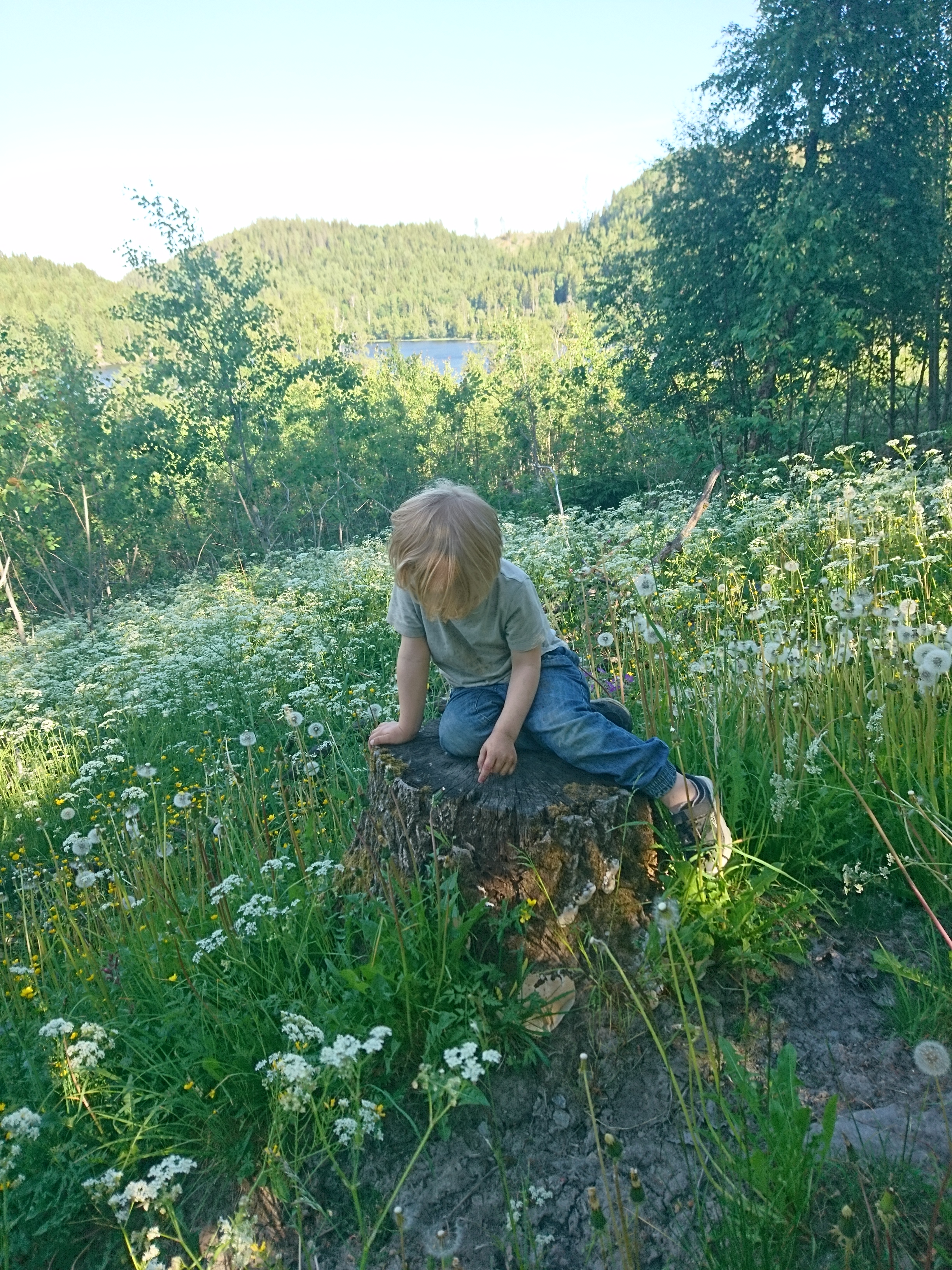 Kvistade iväg där på eftermiddagen för att hämta barn, naturligtvis hade vi glömt att det var ”sommarfika” på förskolan med picknick och så. Kutade in på affärn och köpte lite frukt och brummade sedan in med traktorn.