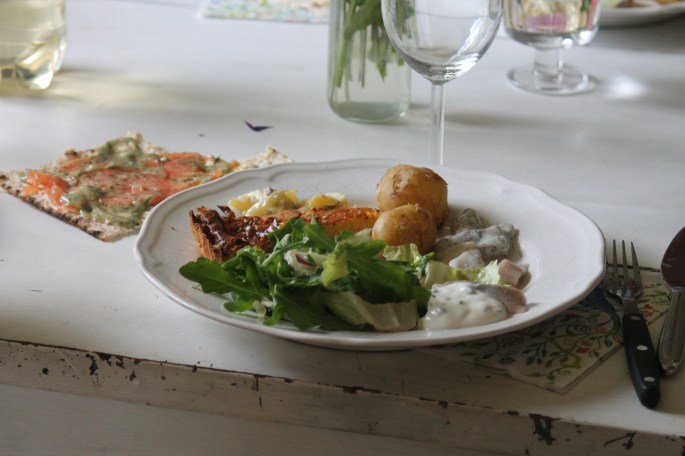 Vi bjöd in närmaste familjen på midsommarmiddag. Sill, Västerbottenpaj och härlig marängtårta med massa grädde och jordgubbar. Midsommarkänlsan infann sig till sist.