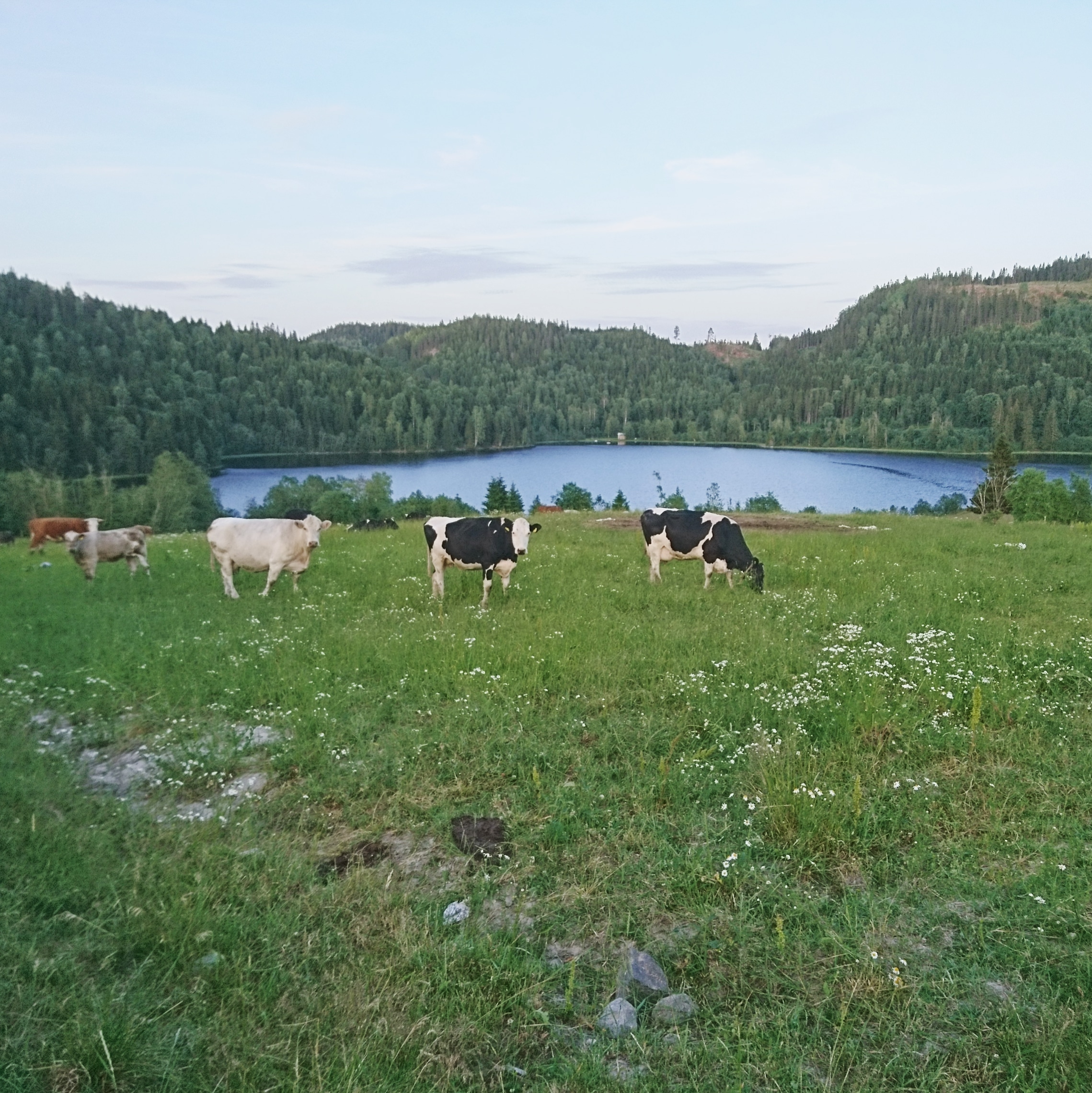 Igår hemmajobbardag. Körde ihop balar och kollade stängselfel. Kviggänget kom ju ut häromdagen när de fått ny fålla så något stort misstänkes eftersom att alla var ute, typ älg som gått genom tråden eller nått. Men ännu ”enklare” var det. En knopp på en hörnstolpe hade gttt sönder av den tjocka, spända tråden så en låg på backen. Bara att sätta upp den igen men lite rejälare så var det fixat!