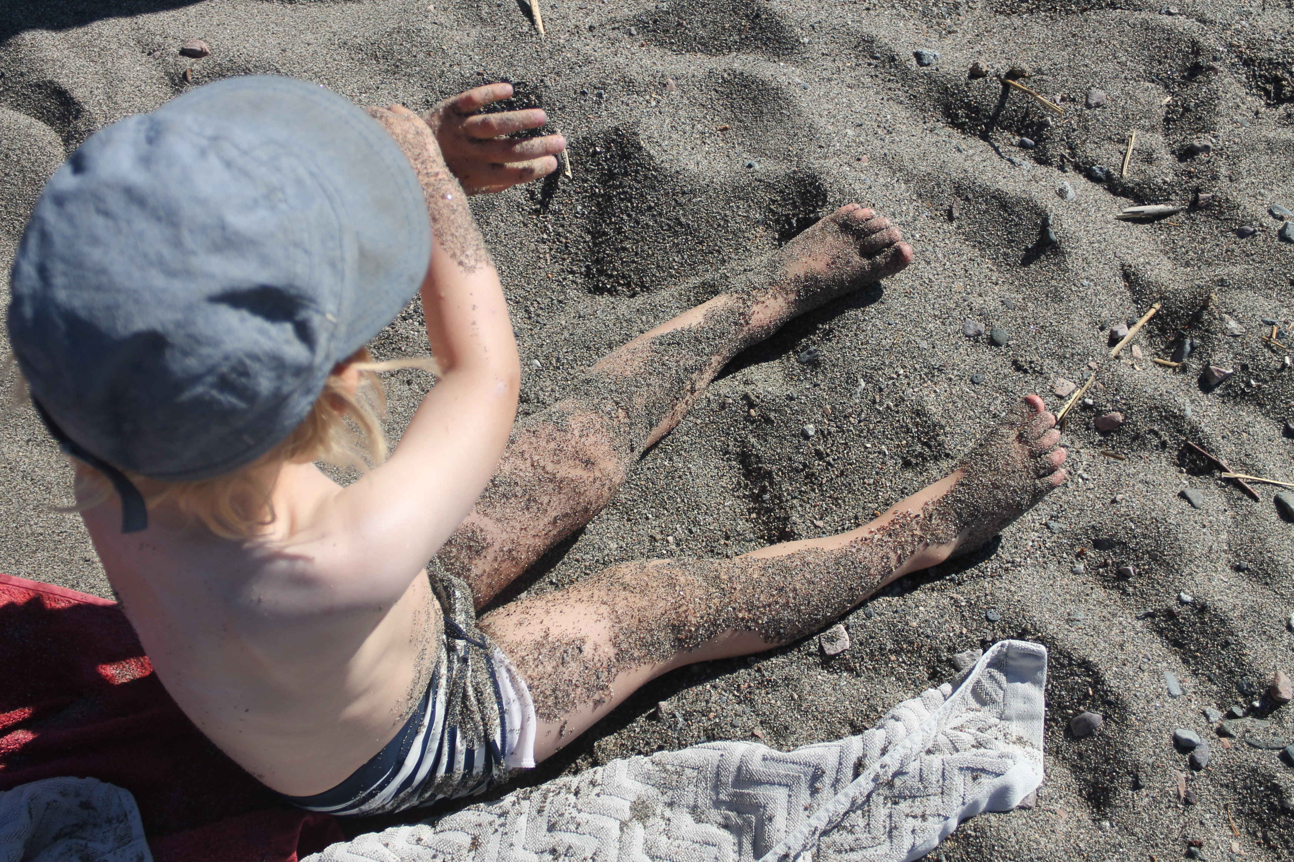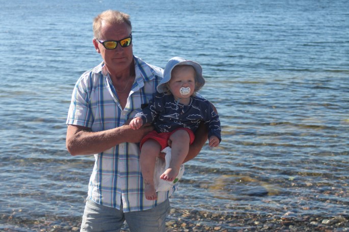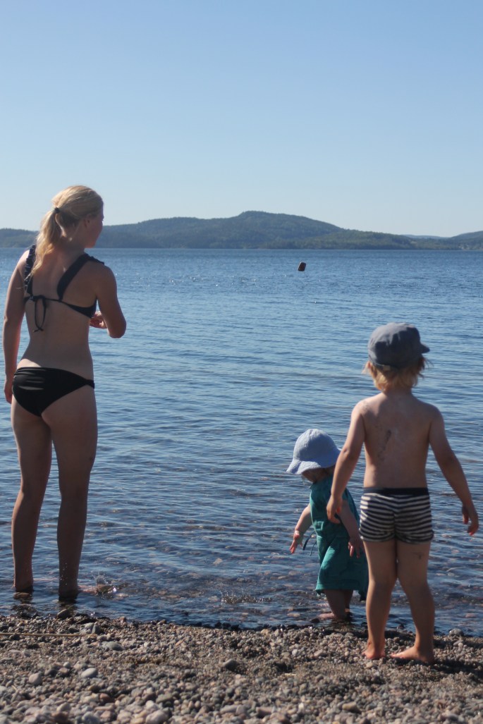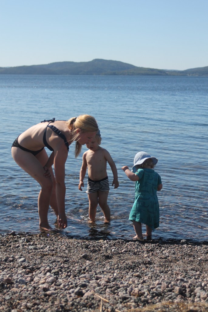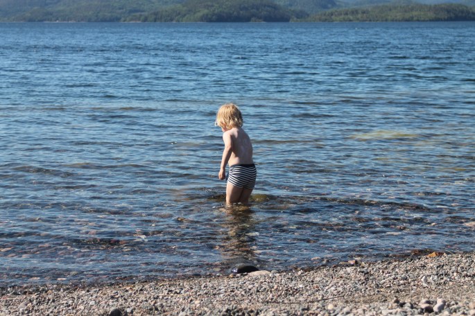 Iskallt i vattnet så något bad blev det inte. Förutom för Lilla P då som verkar vara något av en badfisk!