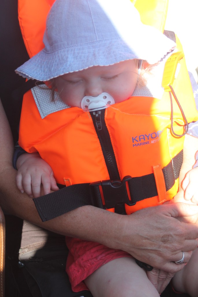 Vi kom hem till läggningstid. En lättsövd pojke kan jag säga efter en dag till sjös.