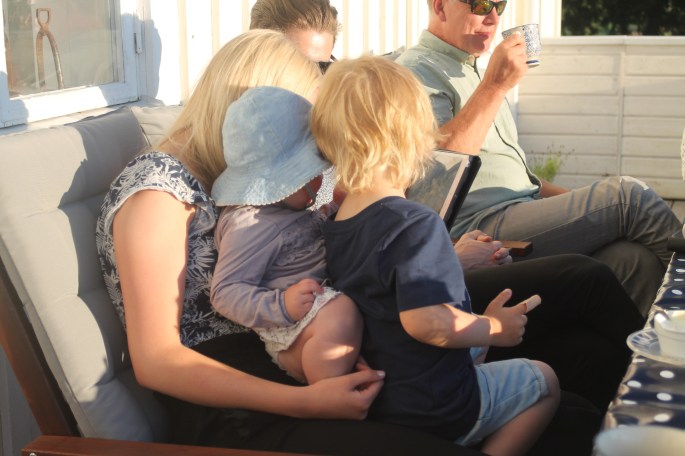 Och så en ljuvlig sommarkväll hos mormorn och morfarn med middag för hela gänget.