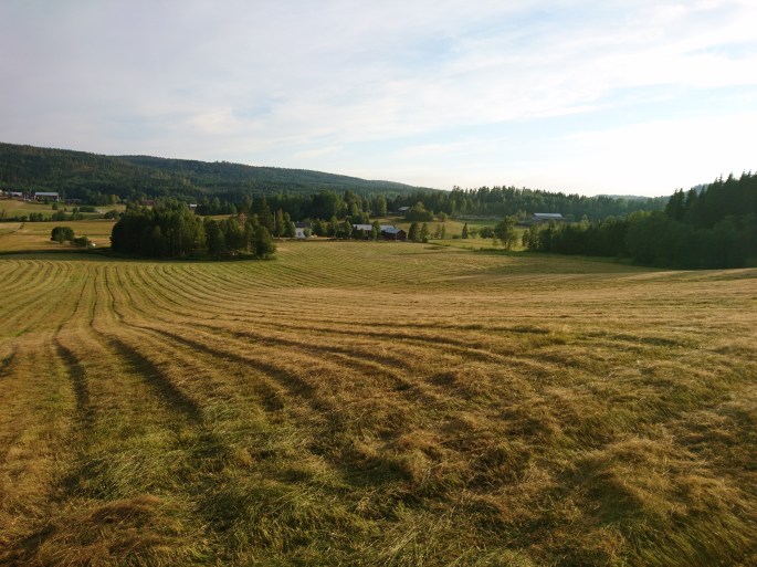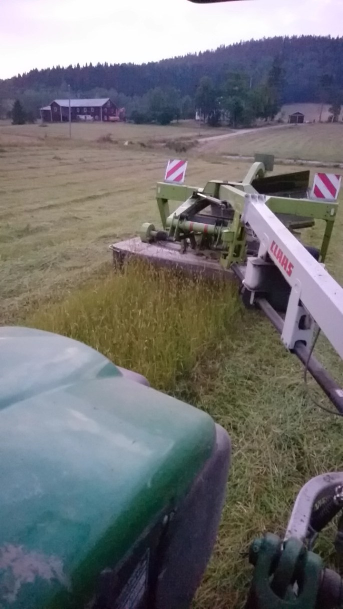 Det är något väldigt tillfredsställande att köra ute på fältet. Att se resultat på det man gör, att bli klar. Oavsett om det är att harva slätt eller att slå gräs. Och det här med att slå är ju ganska nytt för mig så jag kände en extra liten stolthet och lycka när det var klart, jag har slagit hela byn!