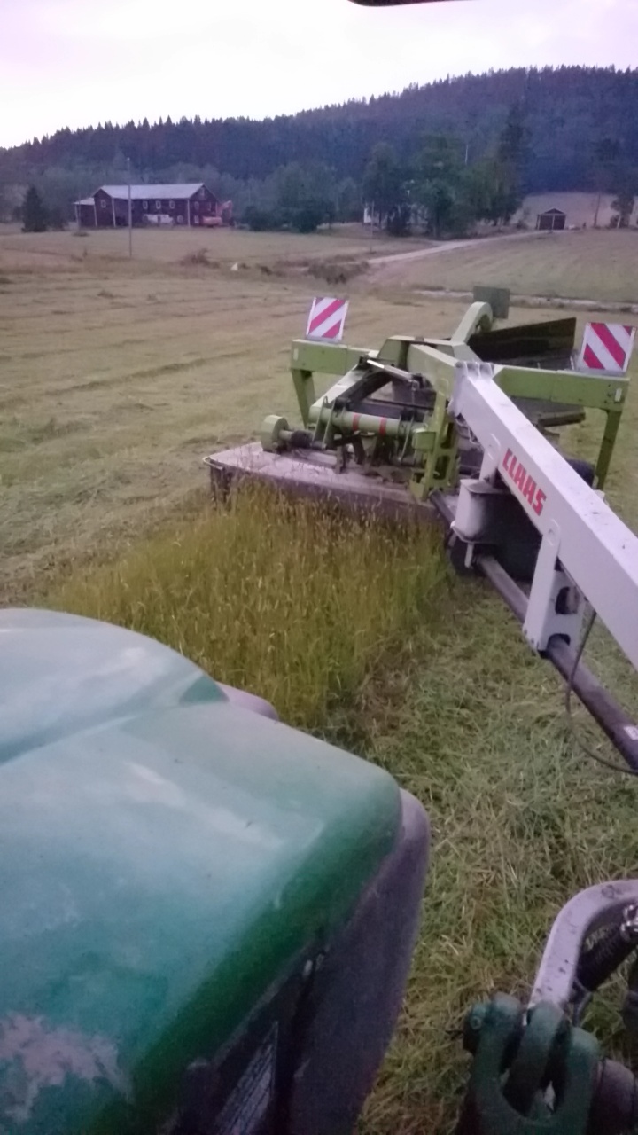 Slåtterkrossen lever och det ska nu slås många hektar, allt som är kvar, inklusive sånt som vi annars bara putsar ner och låter ligga kvar (småbitar och sånt som det inte växer bra gräs på). Det blir ströbalar att ströa i lagårn till i vinter. Och mat också om det kniper.