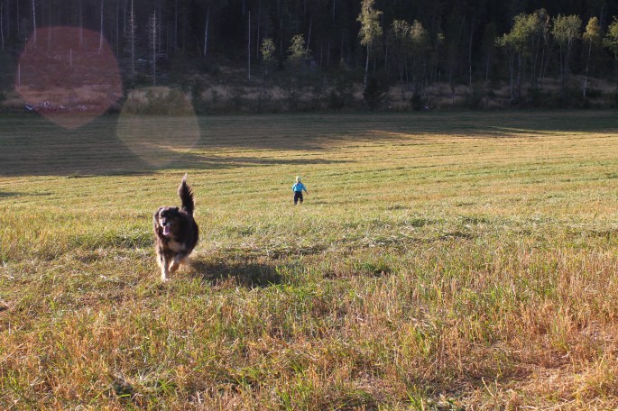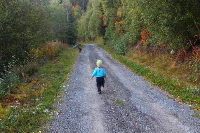 Jag och barn gick en promenad, en väldigt vacker sådan, där målet var pappan och traktorn.