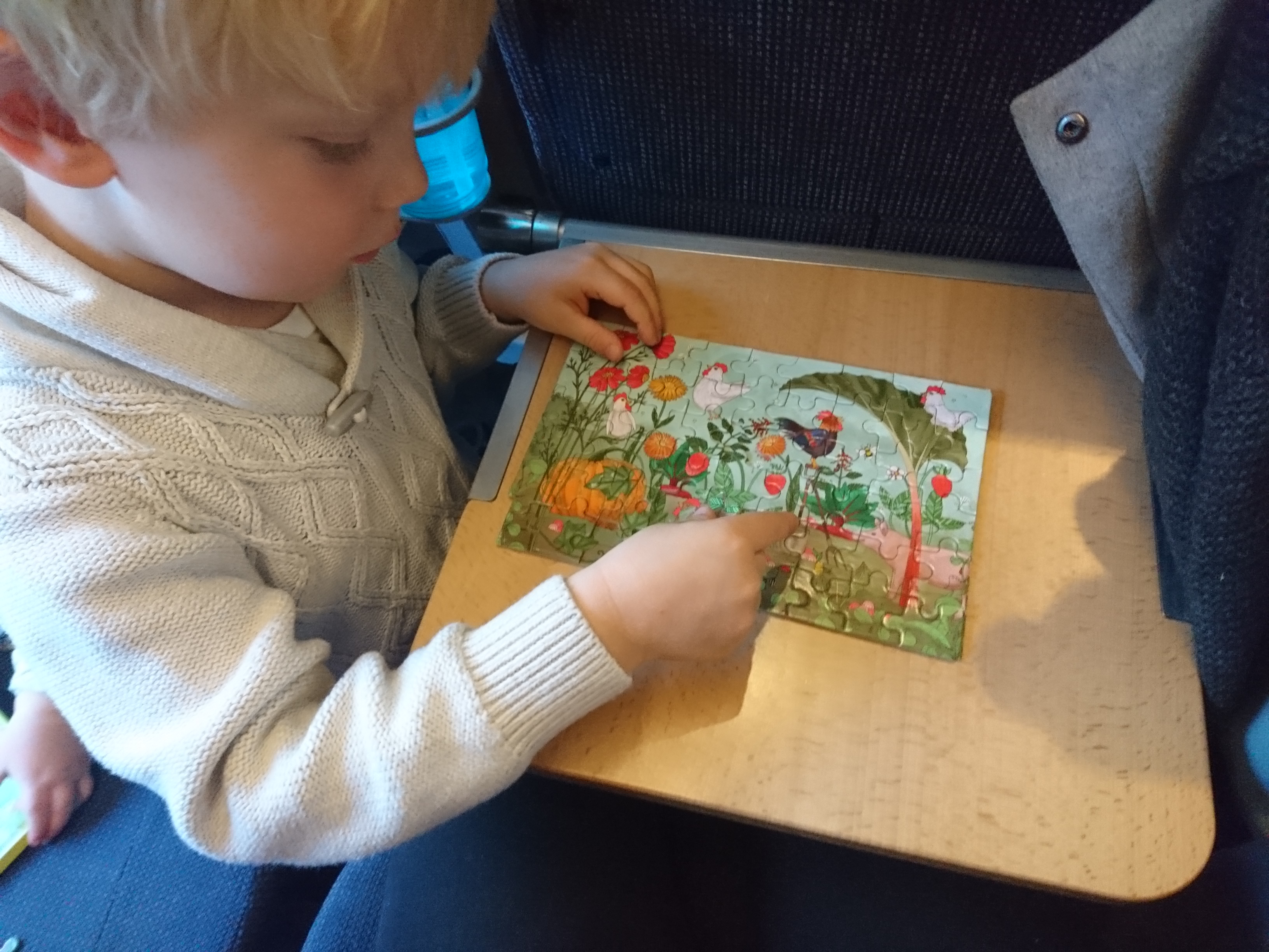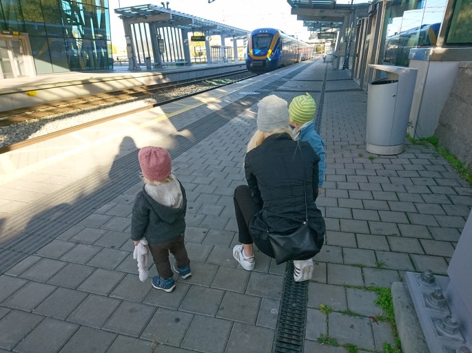 Jag och kids tog tåget på lördag morgon. Nervös mamma som stod på perrongen med två små och en barnvagn. Men vi kom på, allihopa! I två timmar satt vi och läste bok, la pussle, fikade ostmacka och räknade tunnlar vi åkte igenom.