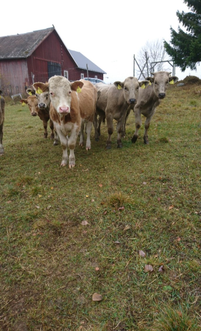 Men! När brödet står på jäsning och vi precis tvättat av oss kakdeg från händerna så får jag ett samtal om att småtjurarna är ute!