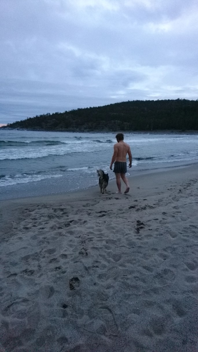 Sen var det ju en tok som slängde kläderna och tog ett dopp! Bilden bedrar lite, där det ser ut som han lugnt är ner mot ett härligt hav. Det gick betydligt fortare upp kan jag säga!