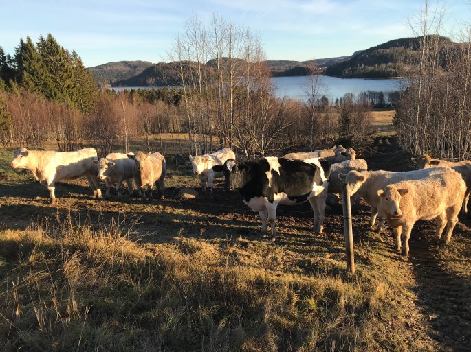 Då hösten varit så fin har det känts dumt att ta hem dom. Balar har körts ut såklart då det inte finns mycket som mättar magarna ute nu.