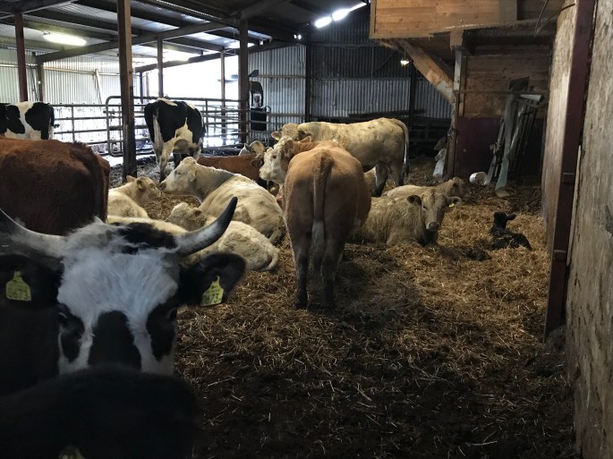 Vi flyttade om lite djur i lagårn och det skrapades och kossorna fick komma in på nyhalmat.
