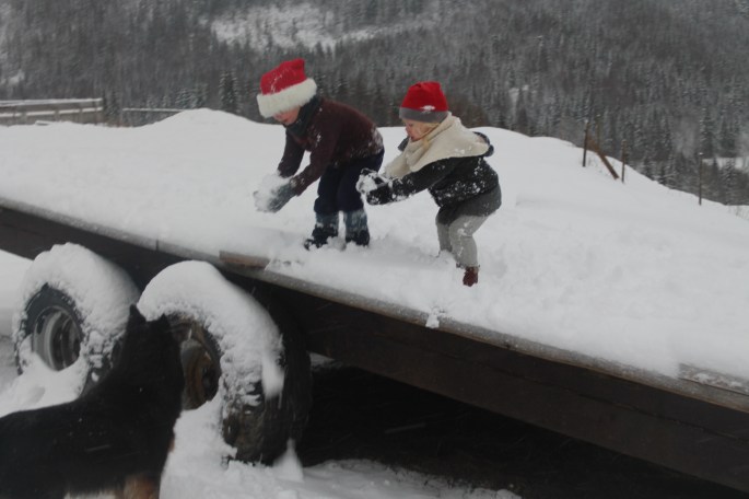 När djuren sen var rätt sorterade öppnade vi upp portarna så de stora gänget fick komma ut, i snön!