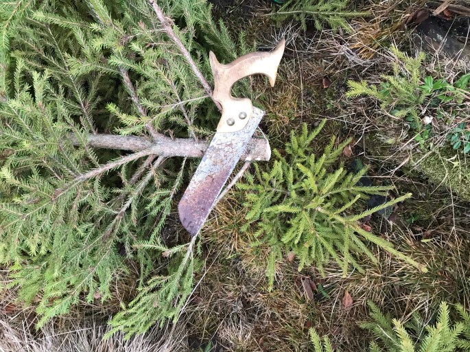 Pappan gick ut på gården och vi andra till ”hygget”.  Smågranar stod på listan.