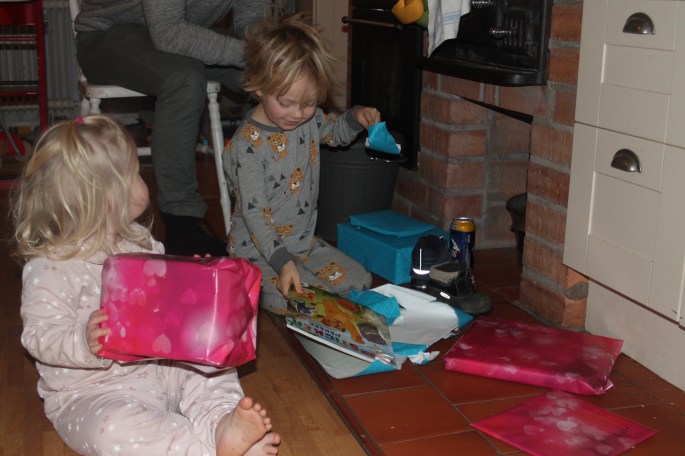 Och den tidiga morgonen så stod där några paket och väntade när nyvakna barn trippade in i köket.