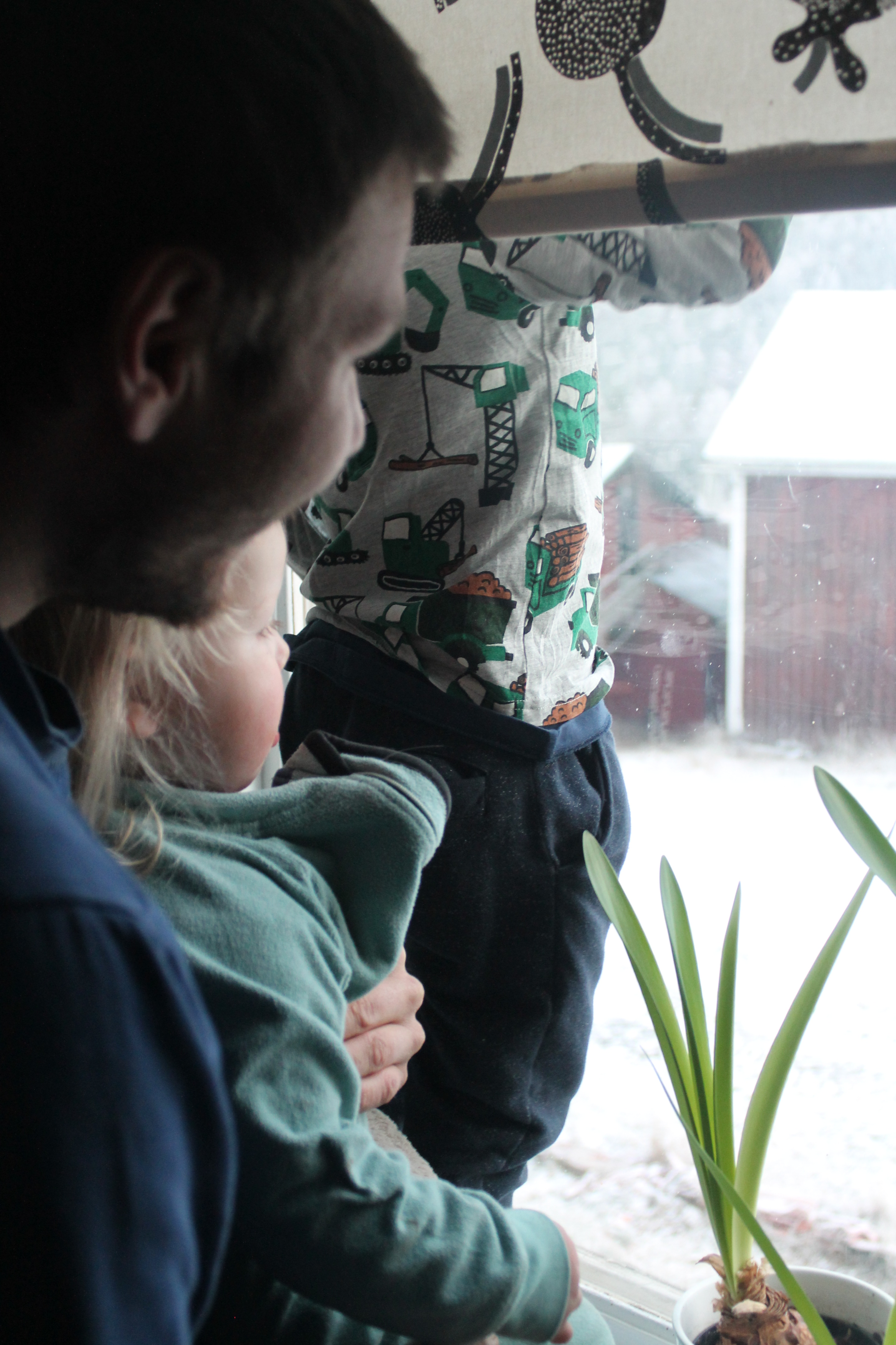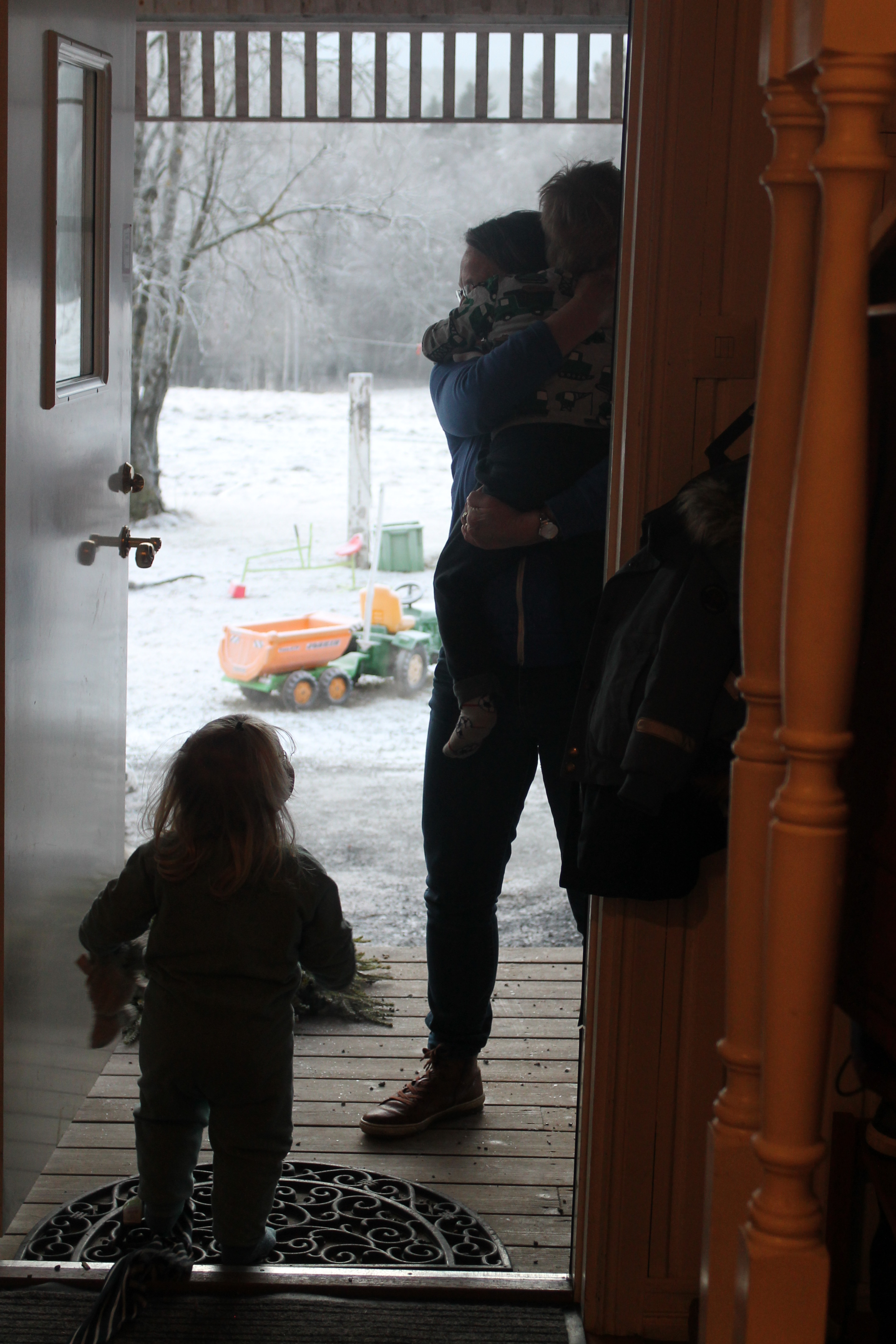 En väldigt innehållsrik dag den där söndagen. Och idag måndag. C gick på jouren han har för snöröjning idag och då kom också snön. Så nu är frosten ett minne blått och vi har vinterlandskap.