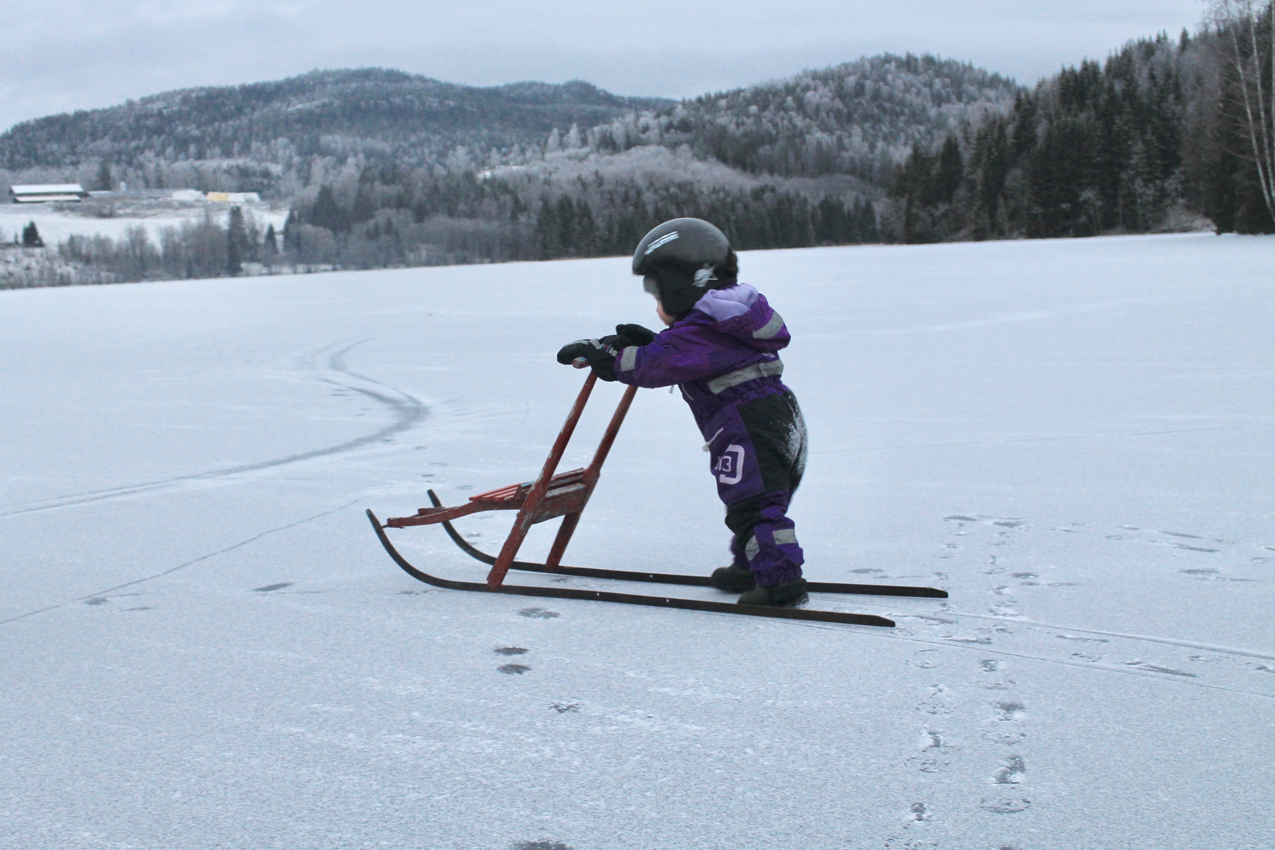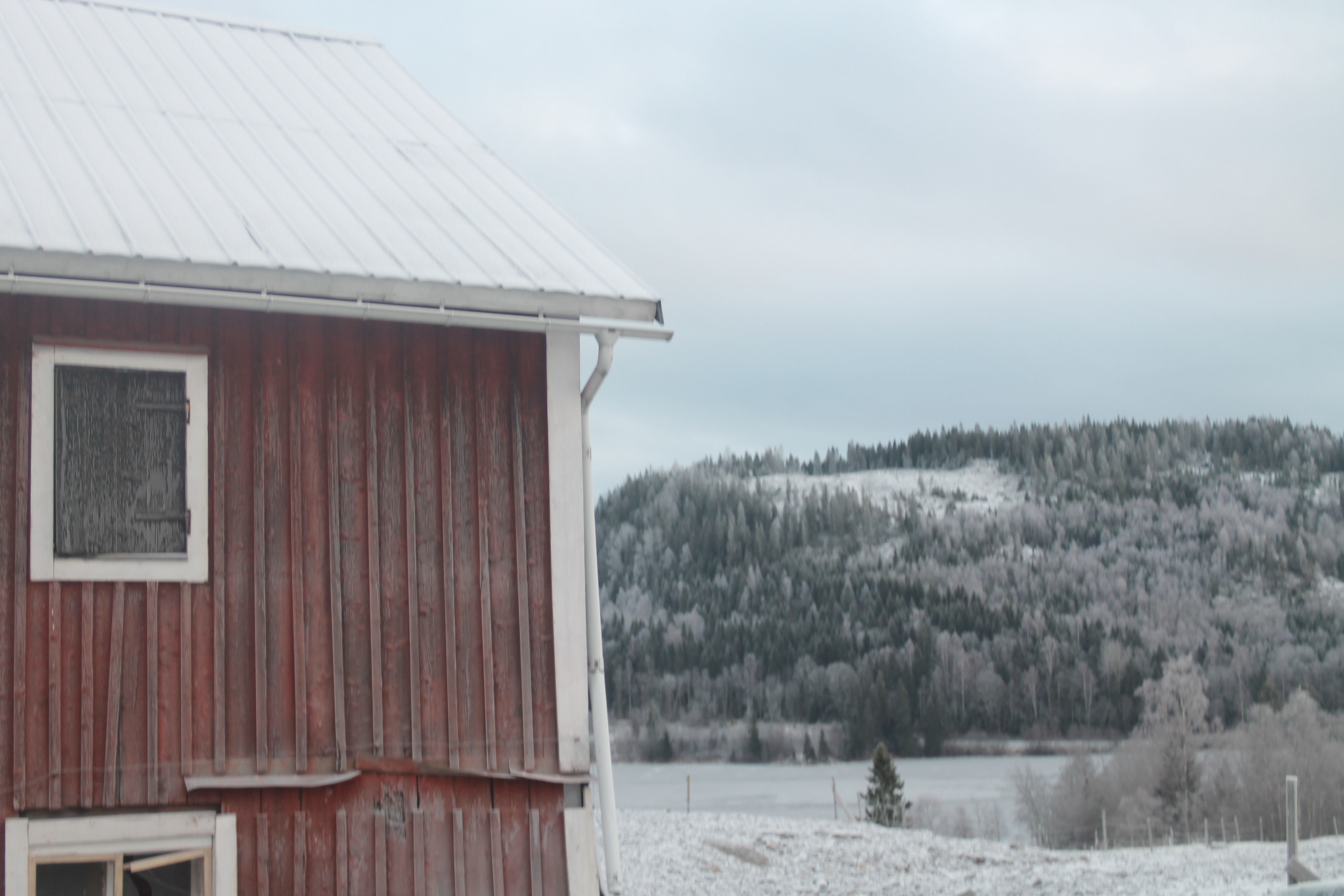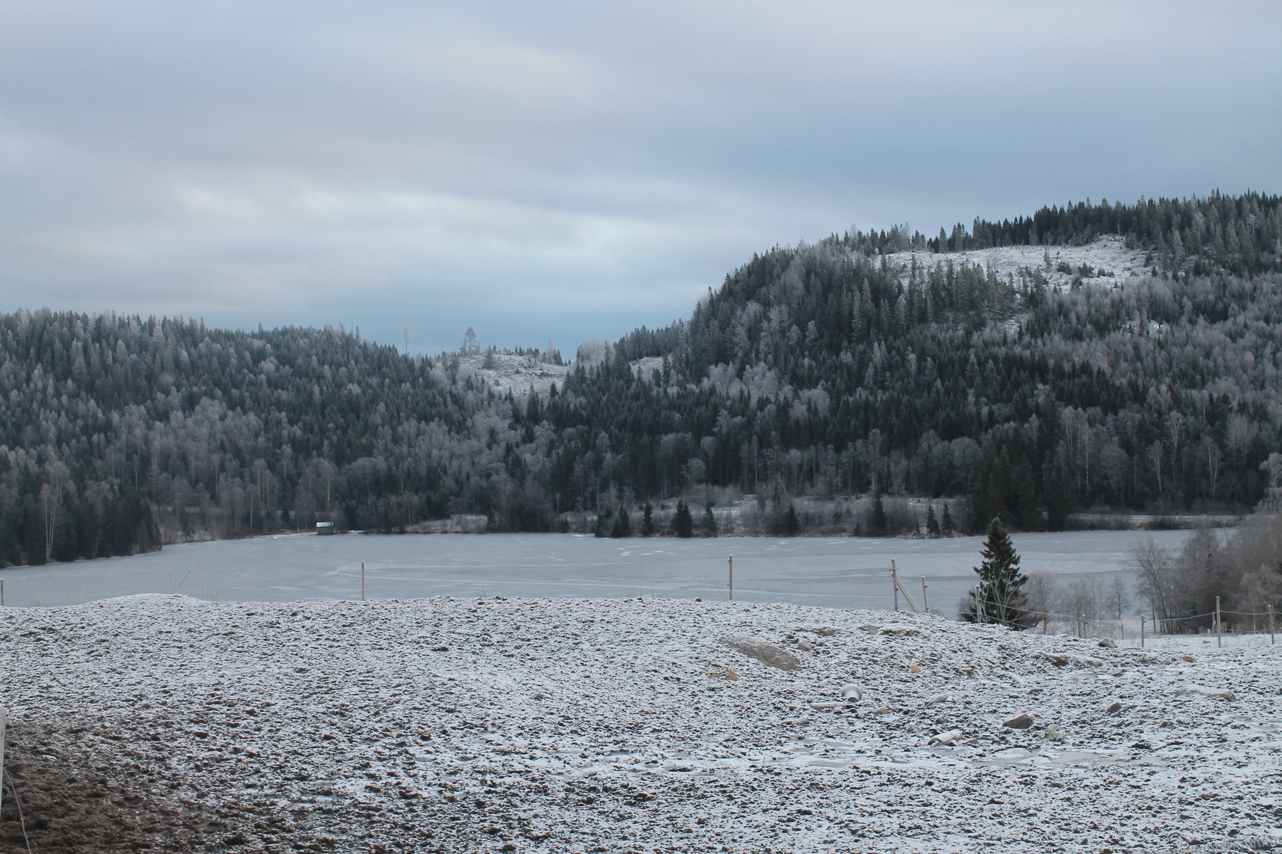 Det snöade några millimeter på förmiddagen, vilket var perfekt för oss utan skridskor som gav lite lite fäste för skorna. Helt lungt och tyst omgivna av det blå/grå skogarna.