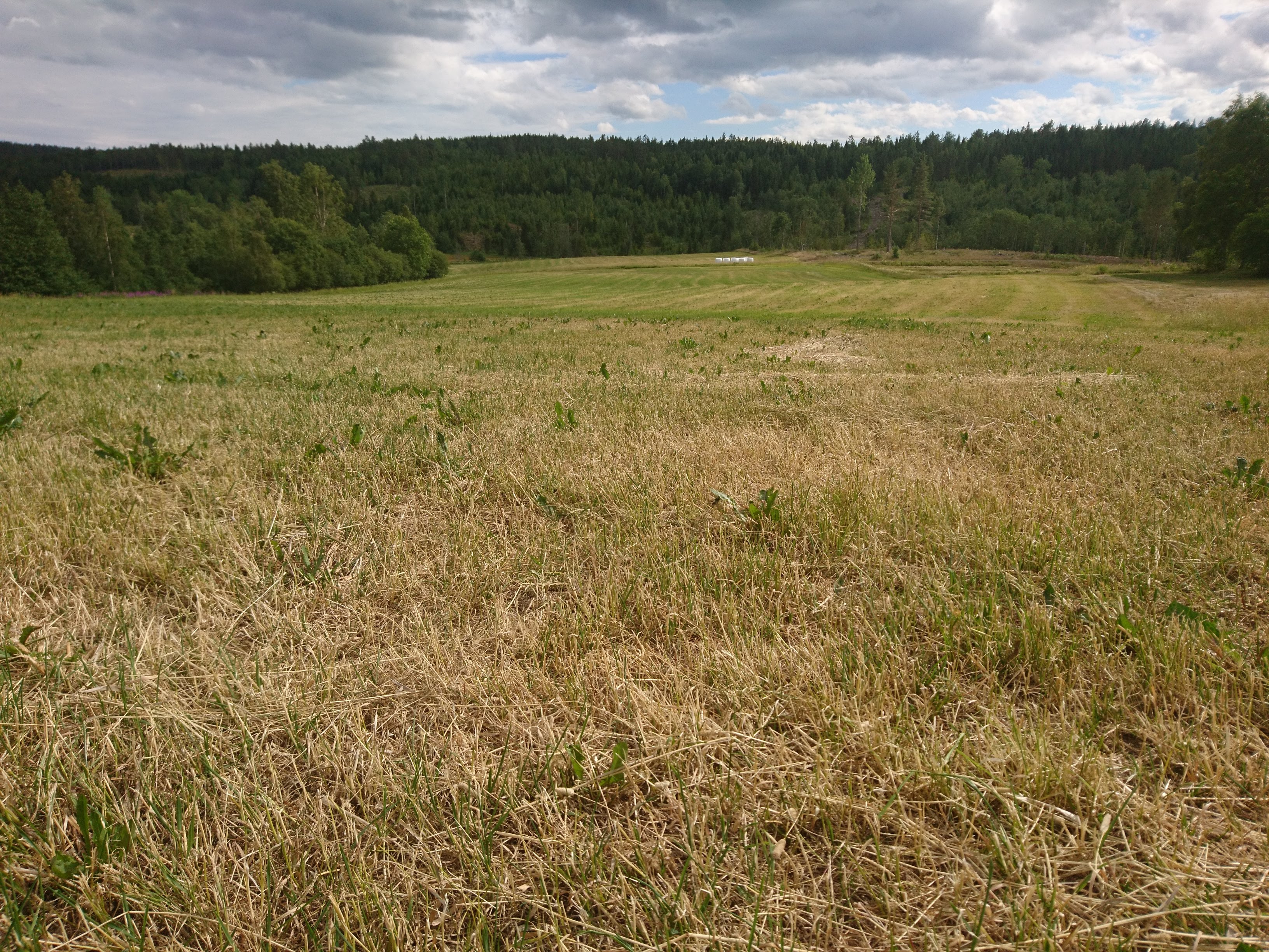 Det vi slagit som första skörd ser fortfarande ut som en gräsmatta, en brun gräsmatta. Ingen återväxt orkar komma upp.