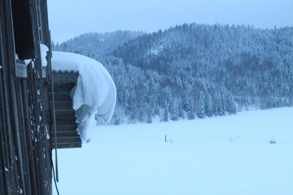 Drivor av snö, kallt glest hus med vinden rakt mot ”svaga sidan”, snötäcke i lagårn hos kossorna, memoryspelning och ett försök till ryggläkning.