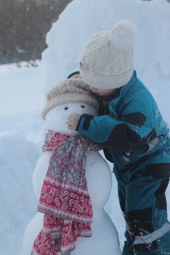 Snöhögsåkning, hopp i snön och snögubbebygge.