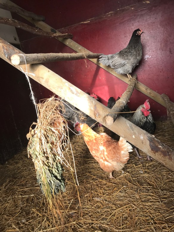 Hönsen fick städat och fint också. Och så kom jag på att jag har något knippe av torkade nässlor kvar! Hann inte plocka in så mycket i fjol men några hänger kvar.