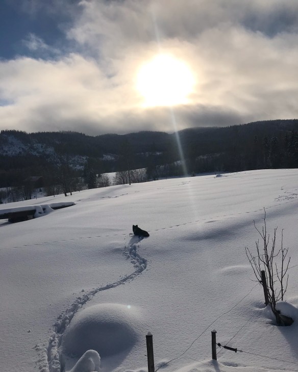 Eftermiddagen blev inte riktigt lika härlig som förmiddagen. Med detta väderomslag till varma grader så blir bäddarna nedtrampade på en gång och en halmning till skulle behövas (halmade dagen innan!). Men det krånglade grej på grej och C skulle ut och ploga, igen efter en natt ute på vägarna och ja, det gick inte som planerat.