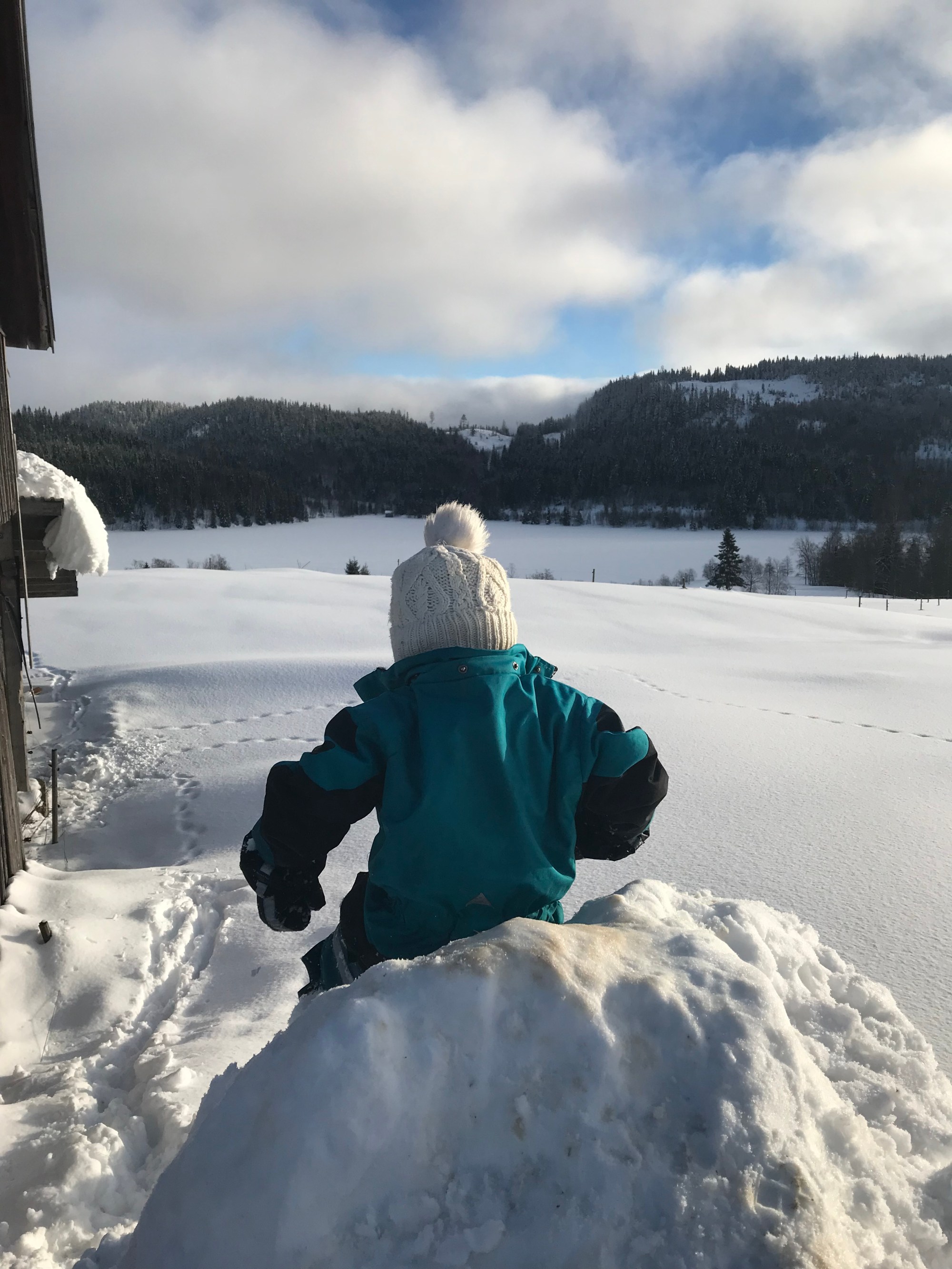 Snöhögsåkning, hopp i snön och snögubbebygge.