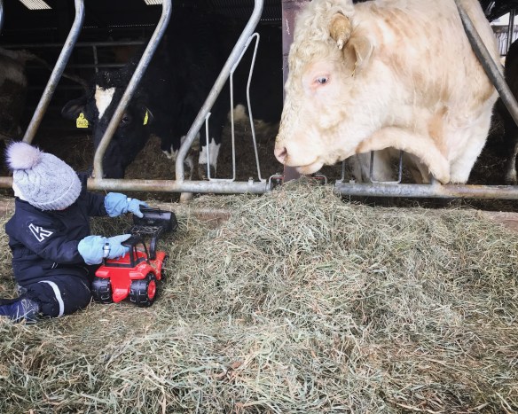 Men nu är det hostigt och febrigt från den minsta. Så en hemmadag har vi haft. C och jag har kört lite delat. Jag har åkt och gjort ladugårdens morgon och eftermiddagsrutiner men varit hemma timmarna över dagen.