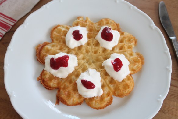 Vi blev bjudna på våfflor till lunch och Lilla P hjälpte till med pyssel i ris innan vi gick ut i solen.