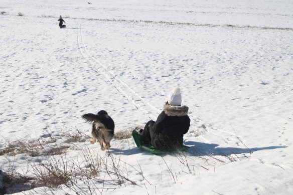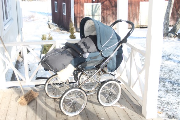 Den minsta bäddades ner i vagnen och slumrade några timmar medans vi andra åkte fort på skaren!