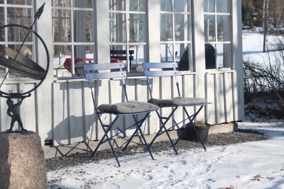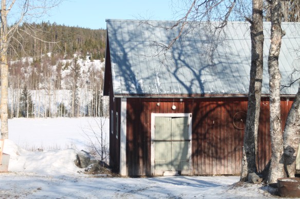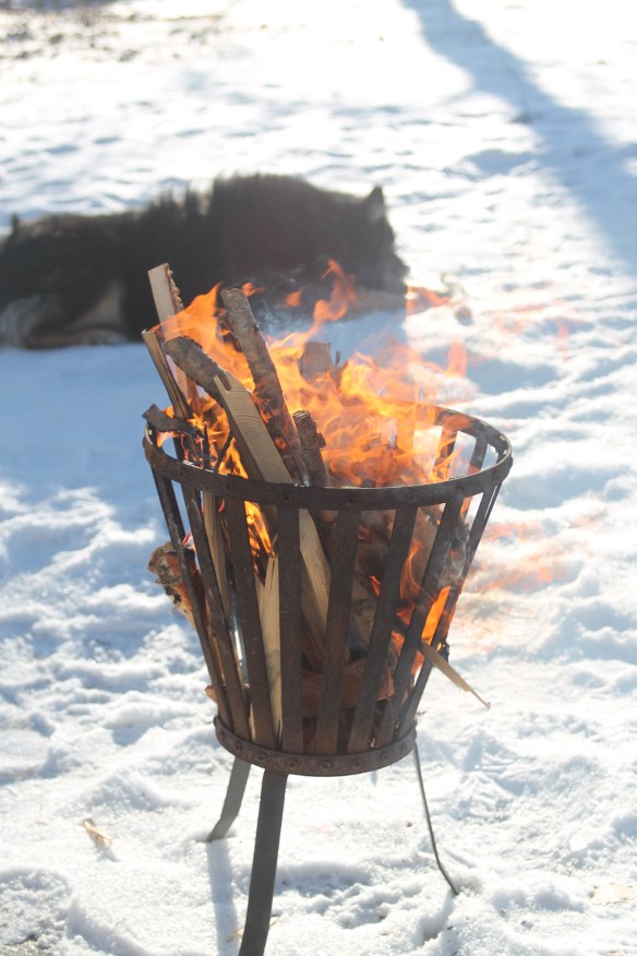 Lilla P intog sedan skotta-snö-läge med sin traktor och vagn (han kan roa sig i timmar) så slog vi oss vuxna ner mot en läsida, tände en brasa och njöt av en kaffekopp med näsan mot solen.