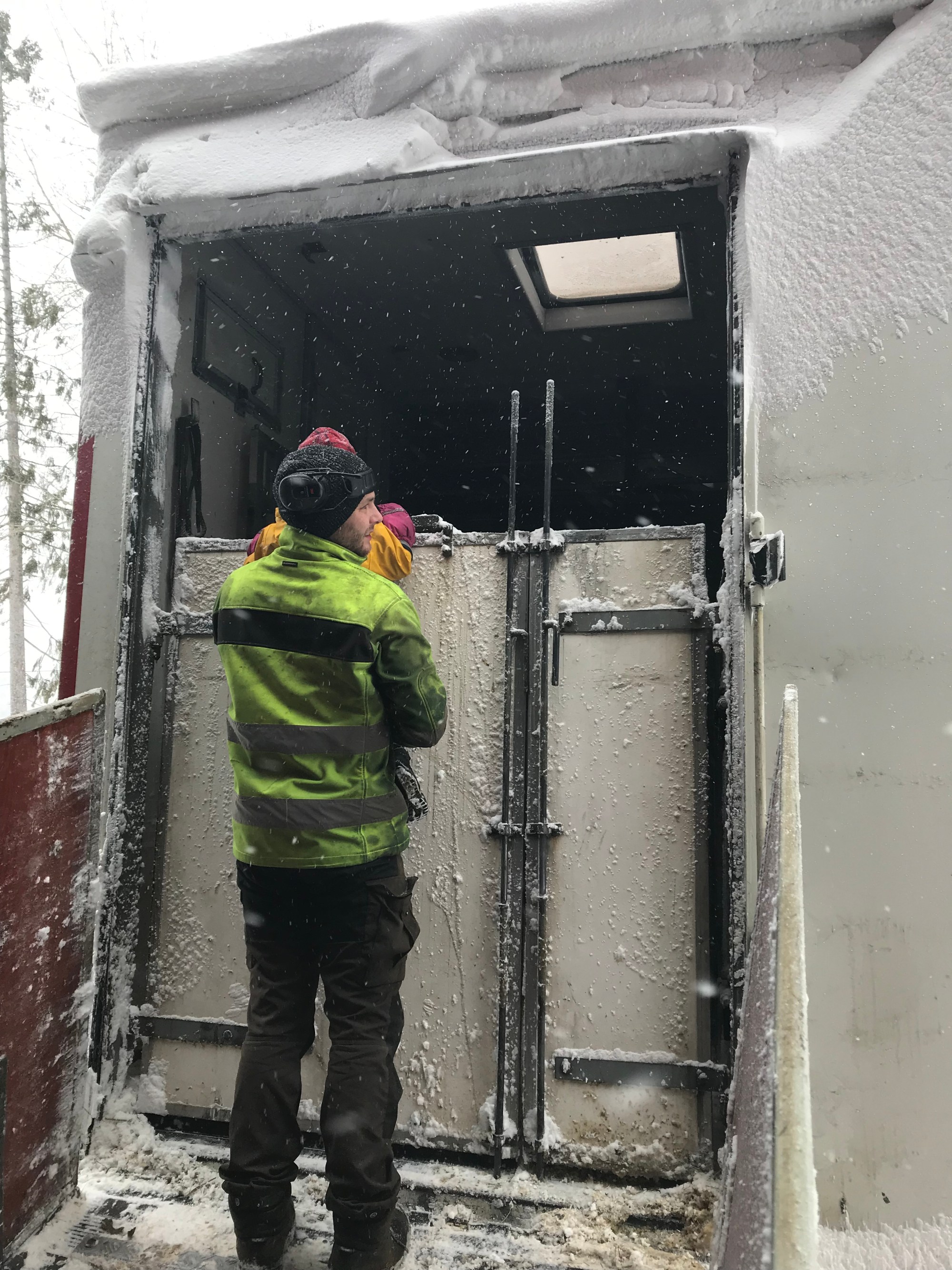 Precis när kalvarna var lastade så ringer telefonen och C blir utringd för snöröjning.