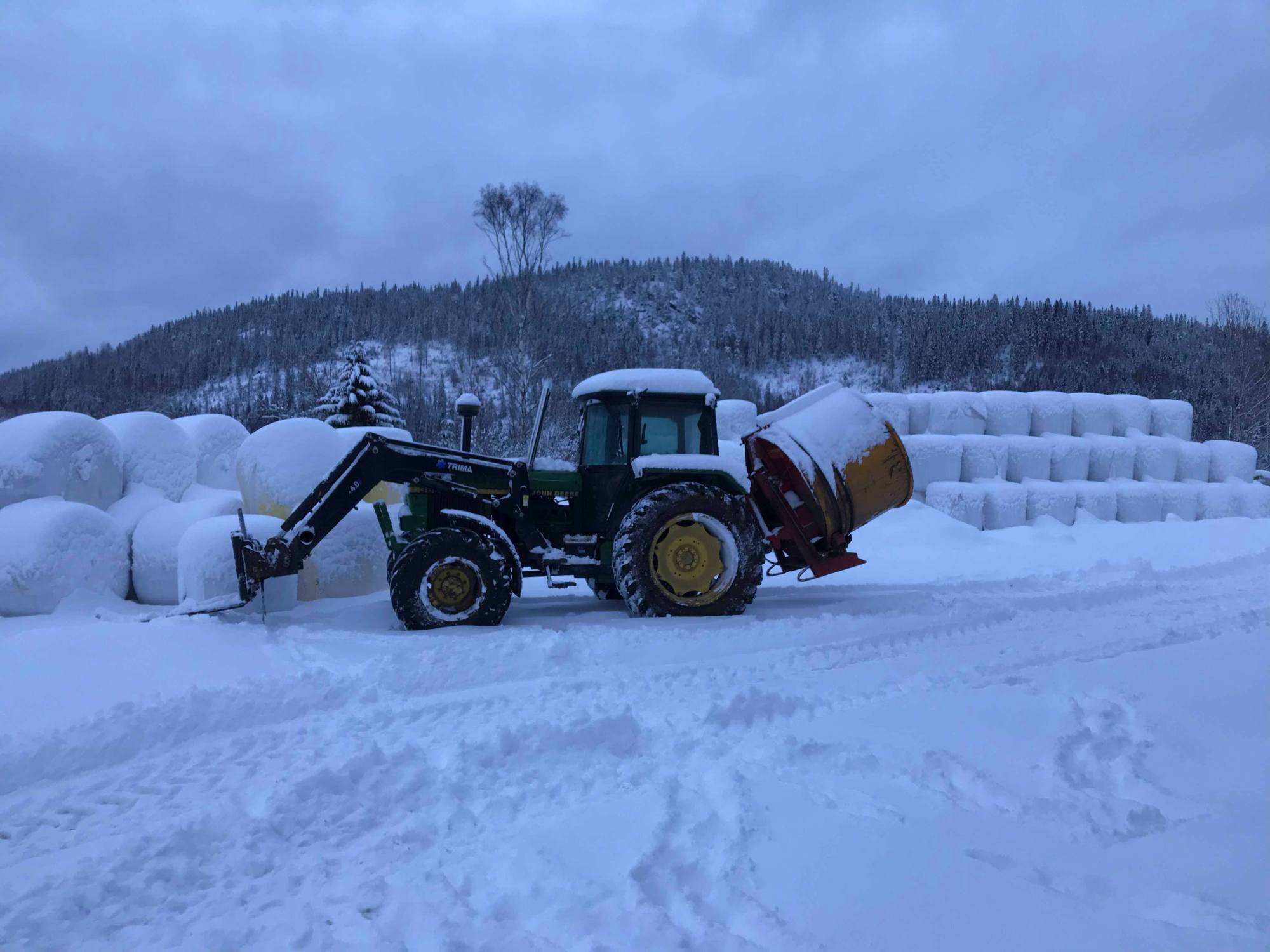Så bara att köra fram och tippa en skopa full i snö tog ju huuur lång tid som helst! När den i sniigelfart stiger och man får ha gasen i botten och varva så man knappt hör vad man tänker. Det tog sin lilla tid att bara få upp ett spår runt gården kan jag säga.