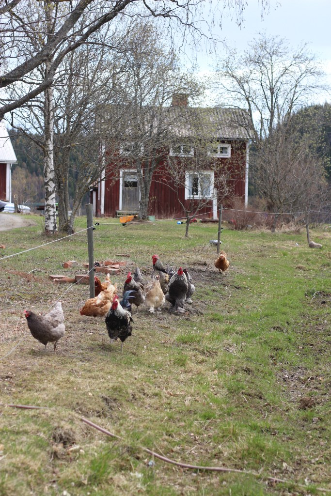 Där jag hade fint sällskap av hönsen som lika Kajsa-hunden följde mig som en skugga.