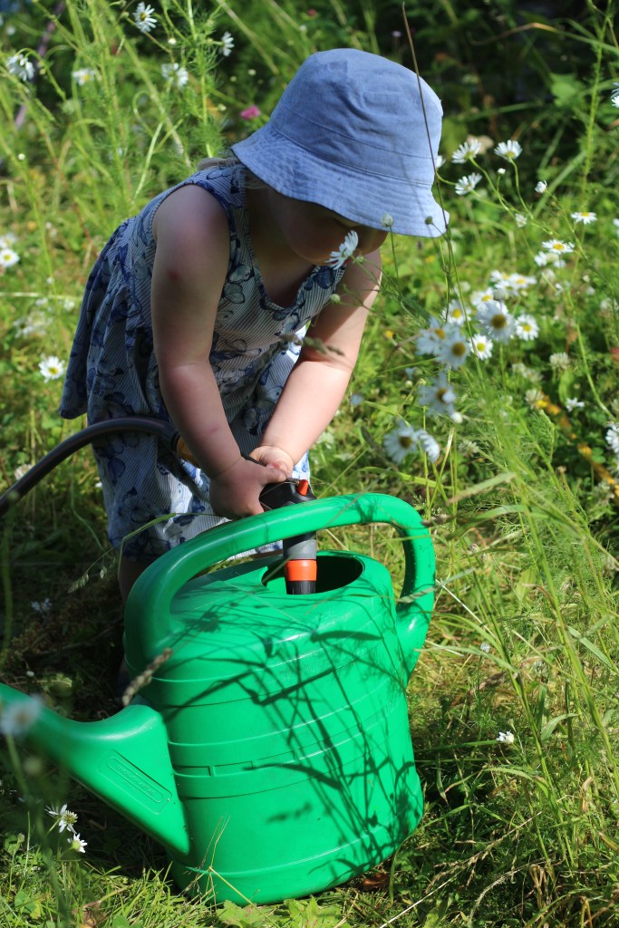 Och vattna tomater och morötter i denna torka såklart! Det är Hedvig en hejare på!